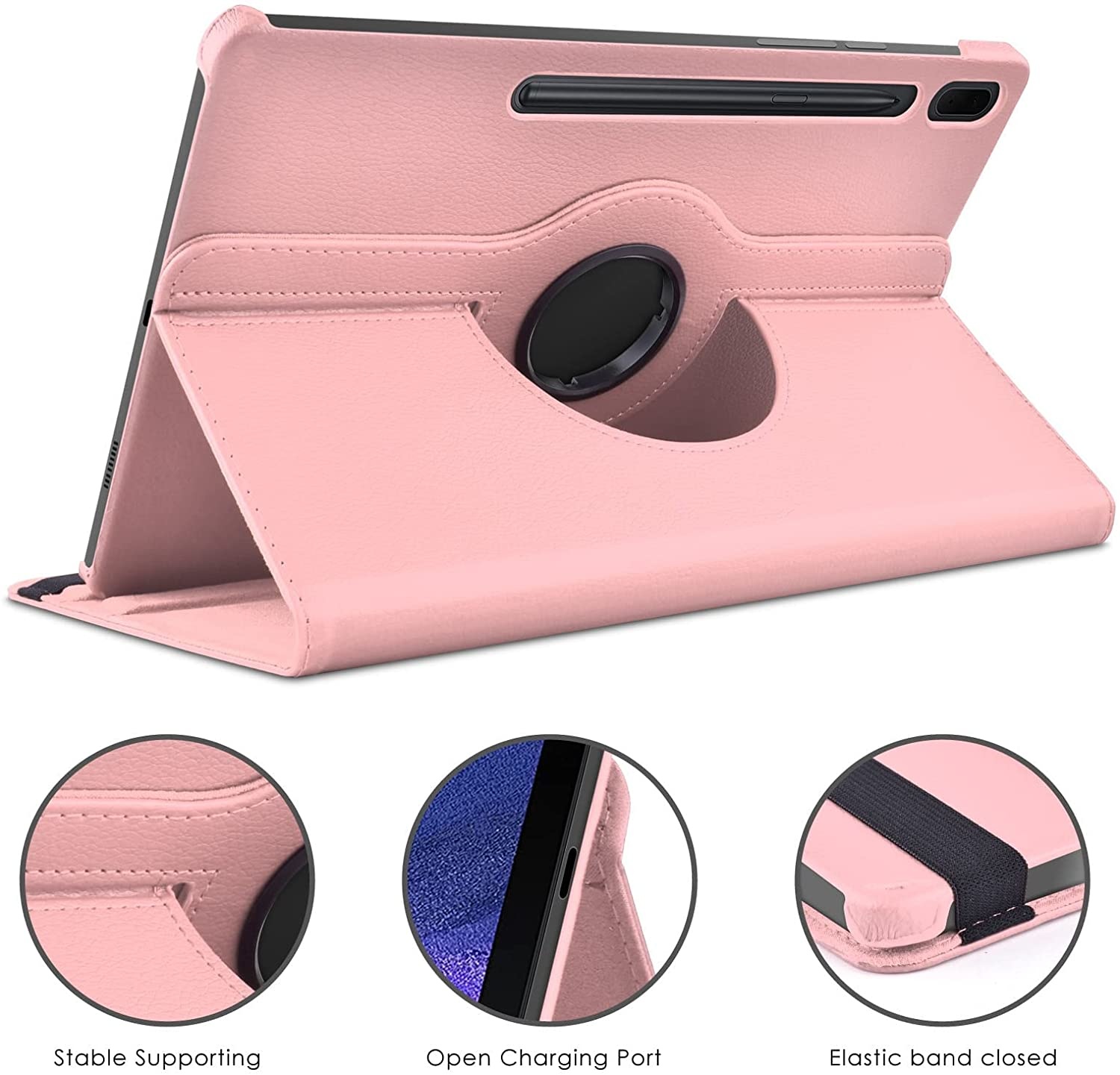 Hoesje Geschikt Voor Samsung Galaxy Tab S8 Plus hoes Draaibare Book Case Cover Rose Goud - Hoesje Geschikt Voor Samsung Galaxy Tab S8 Plus hoesje 2022/ Tab S7 FE 2021/Tab S7 Plus 2020 hoesje -Tablet Hoes 12.4 Inch
