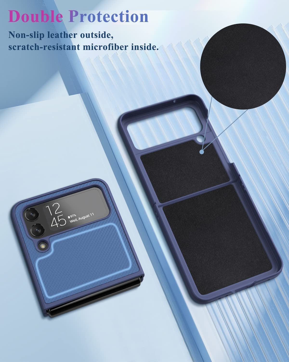 【Premium Leather Material】Ntech for galaxy z flip 4 case is gemaakt van hoge kwaliteit PC met een mooie coating, geen eigenaardige geur, heeft een mat effect, en heeft super anti-vingerafdruk, anti-kras en anti-vlek prestaties.