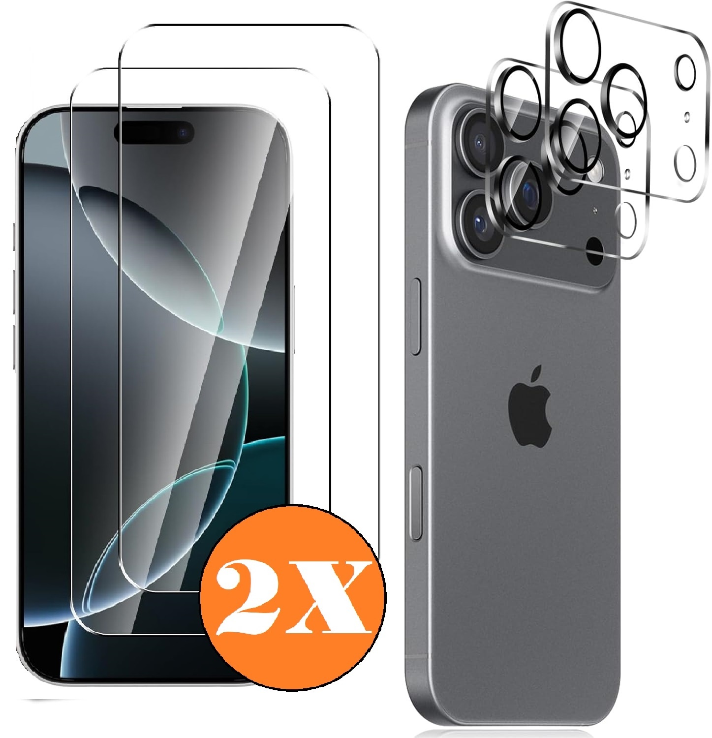 Screenprotector geschikt voor iPhone 17 Pro ScreenProtector en Camera lens protector/ Tempered glass - Beschermglas - Glasplaatje - 2+2 stuks