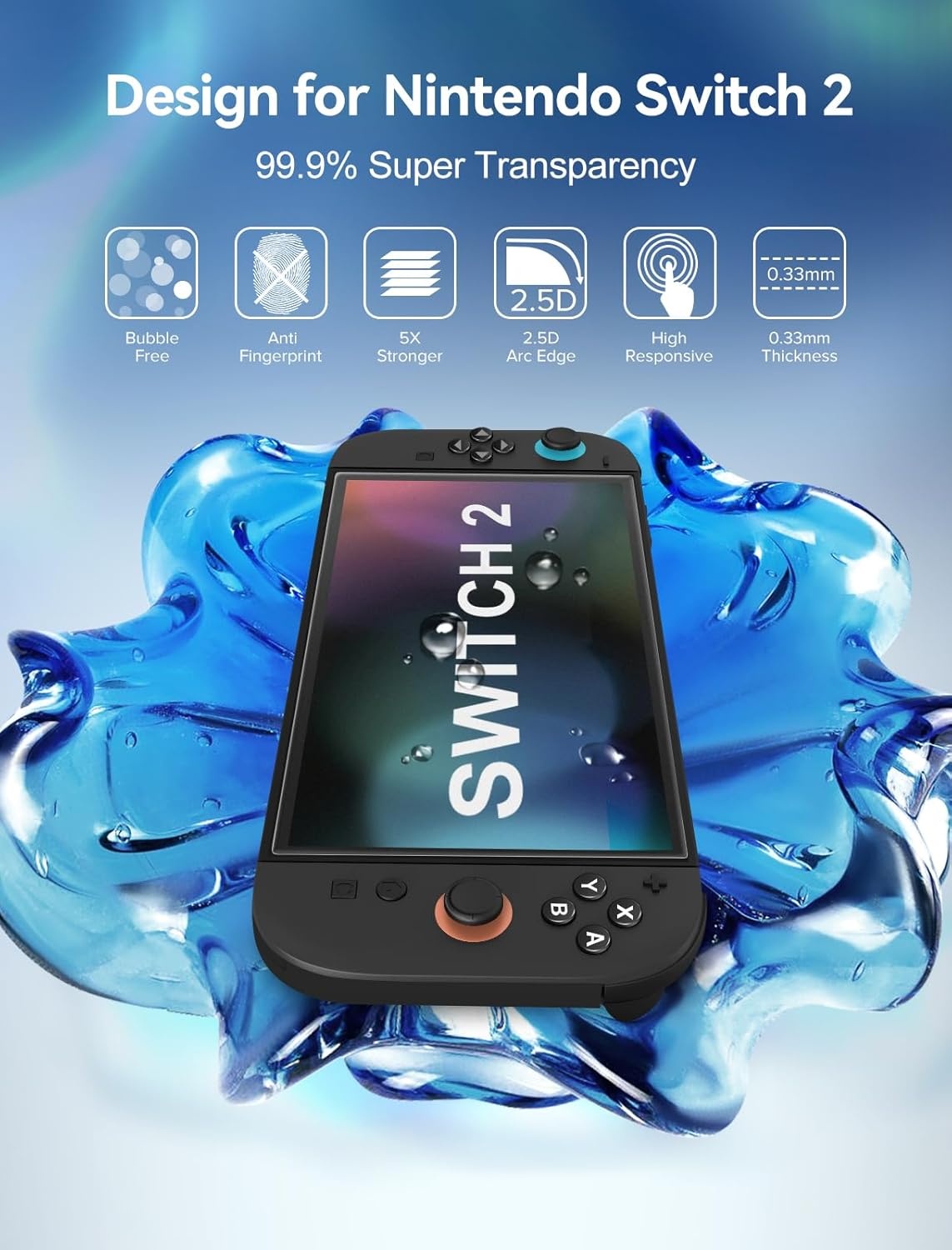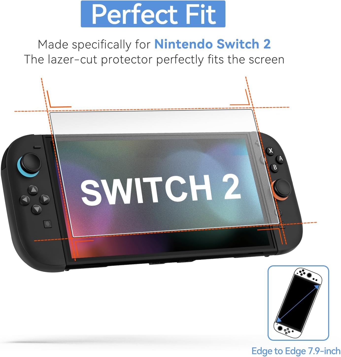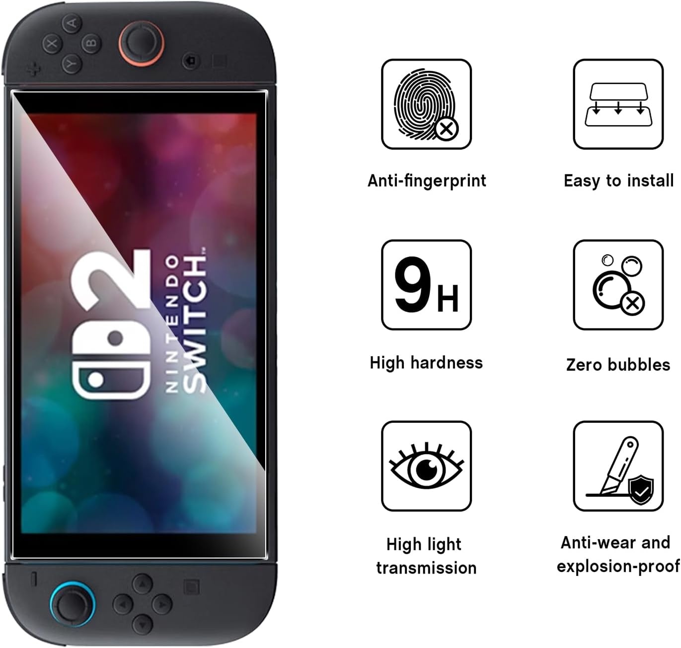Deze Screenprotector zorgt ervoor dat jouw Nintendo Switch 2 2025 in optimale staat blijft. de screenprotector dekt het volledige scherm (full-screen), de screenprotector is gemaakt van hoogwaardig gehard glas (9H).