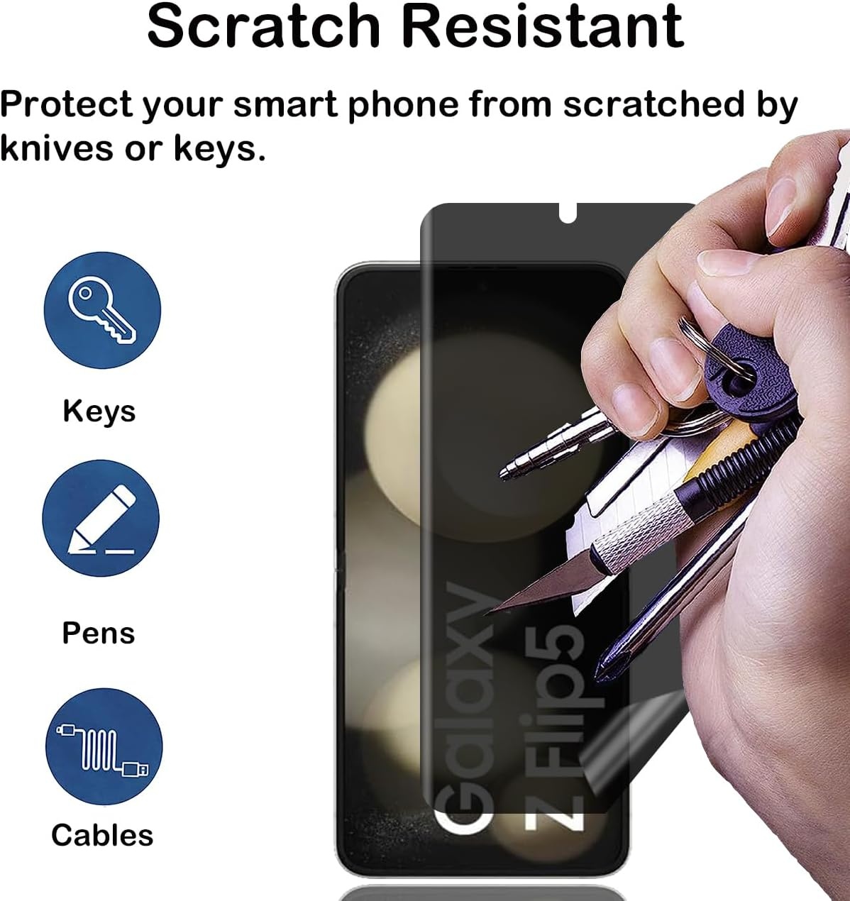 Bescherm uw Samsung Galaxy Z Flip 5 niet alleen tegen krassen en slijtage, maar ook tegen nieuwsgierige blikken met deze hoogwaardige privacy screen protector. Gemaakt van duurzaam en flexibel TPU (Thermoplastisch Polyurethaan) materiaal, biedt deze screen protector zowel fysieke bescherming als privacyfunctionaliteit, zodat u uw persoonlijke informatie veilig kunt houden.