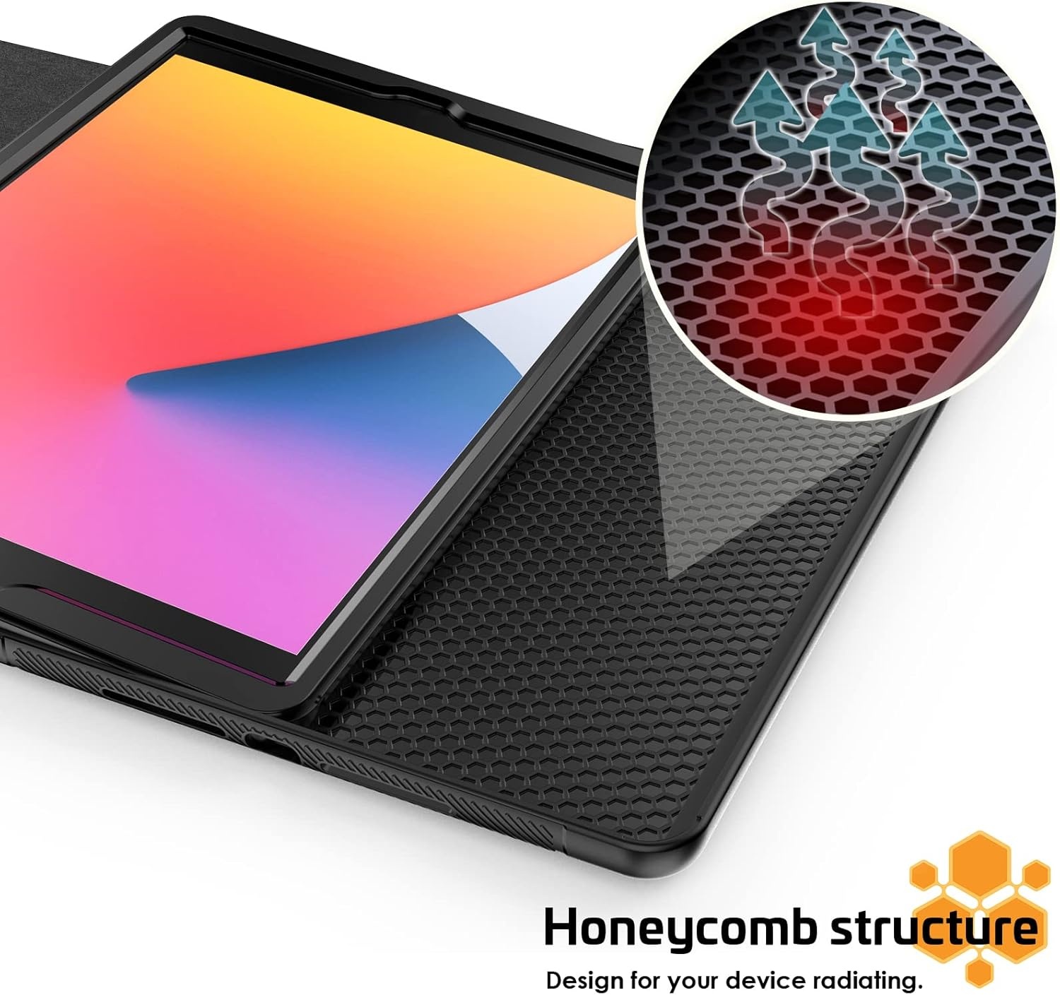 Zachte TPU Hoes met Honingraatpatroon: Het zachte TPU-materiaal met honingraatstructuur zorgt voor een comfortabele grip en voorkomt oververhitting van je iPad Hoes 5e, 6e, Air 1e, Air 2e Generatie - 9.7 inch (2017/2018). De honingraatstructuur bevordert een effectieve warmteafvoer, zodat je iPad koel blijft, zelfs bij langdurig gebruik.