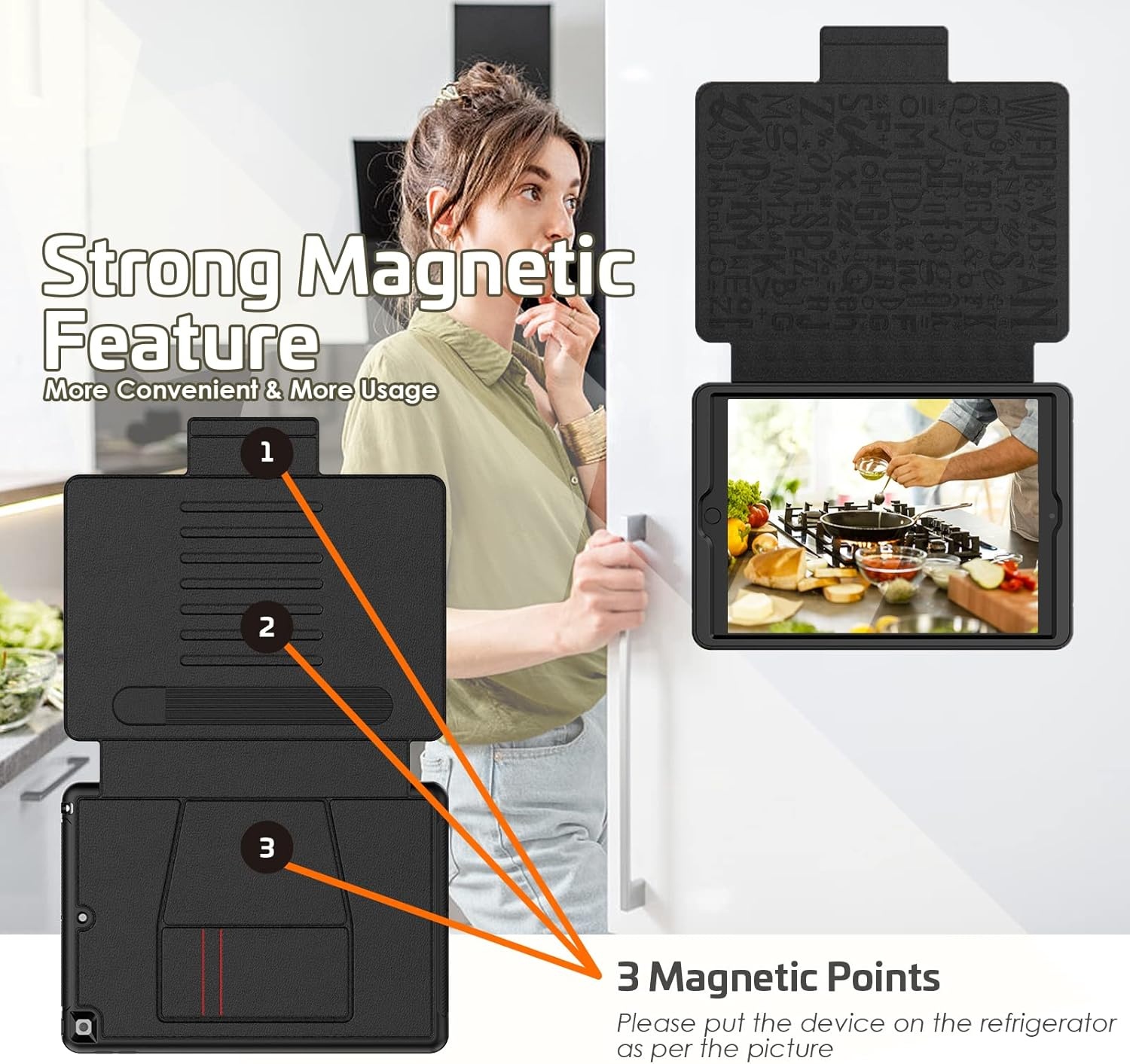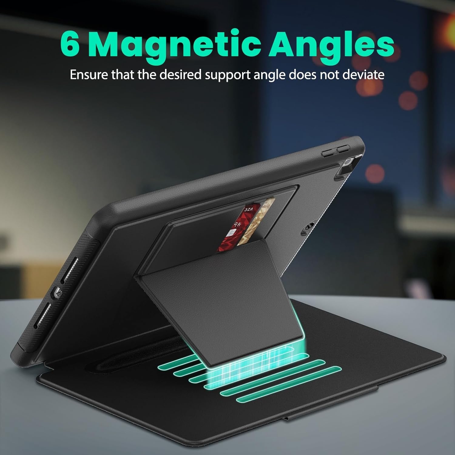 Multi-Angle Magnetic Stand: De ingebouwde magnetische standaard biedt verschillende kijkhoeken voor je iPad Hoes 5e, 6e, Air 1e, Air 2e Generatie - 9.7 inch (2017/2018). Of je nu films kijkt, videobelt of typt, je kunt de ideale positie vinden voor een comfortabele ervaring. De krachtige magneten zorgen ervoor dat de hoes stevig op zijn plaats blijft zonder te verschuiven.