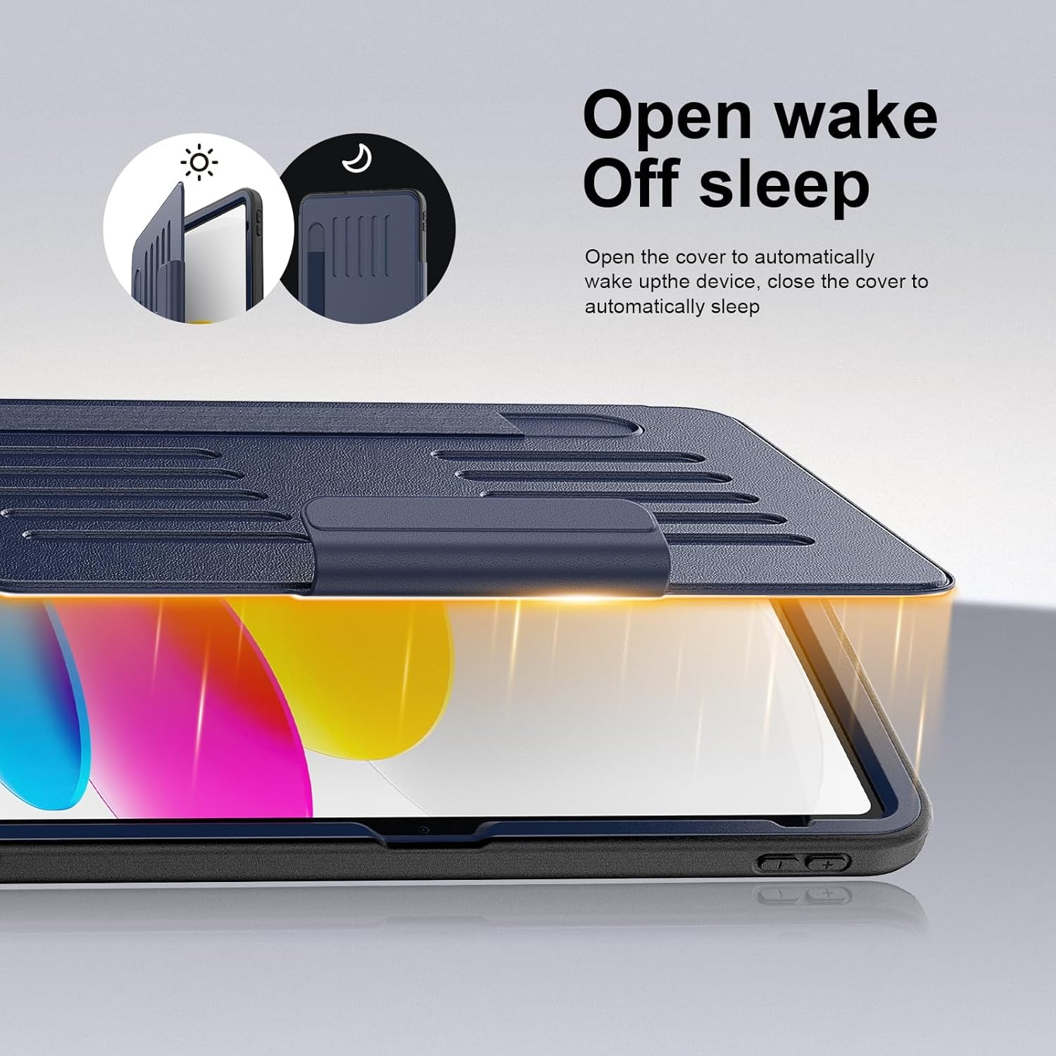 Auto Sleep/Wake Functie: Dankzij de slimme auto sleep/wake functie wordt je iPad A16 11th Generation 2025/iPad 10th Generation 2022 (11/10.9 inch) automatisch wakker bij het openen van de hoes en wordt het in slaapstand gezet wanneer de hoes wordt gesloten. Dit helpt je batterij te sparen en biedt snel toegang tot je apparaat zonder gedoe.