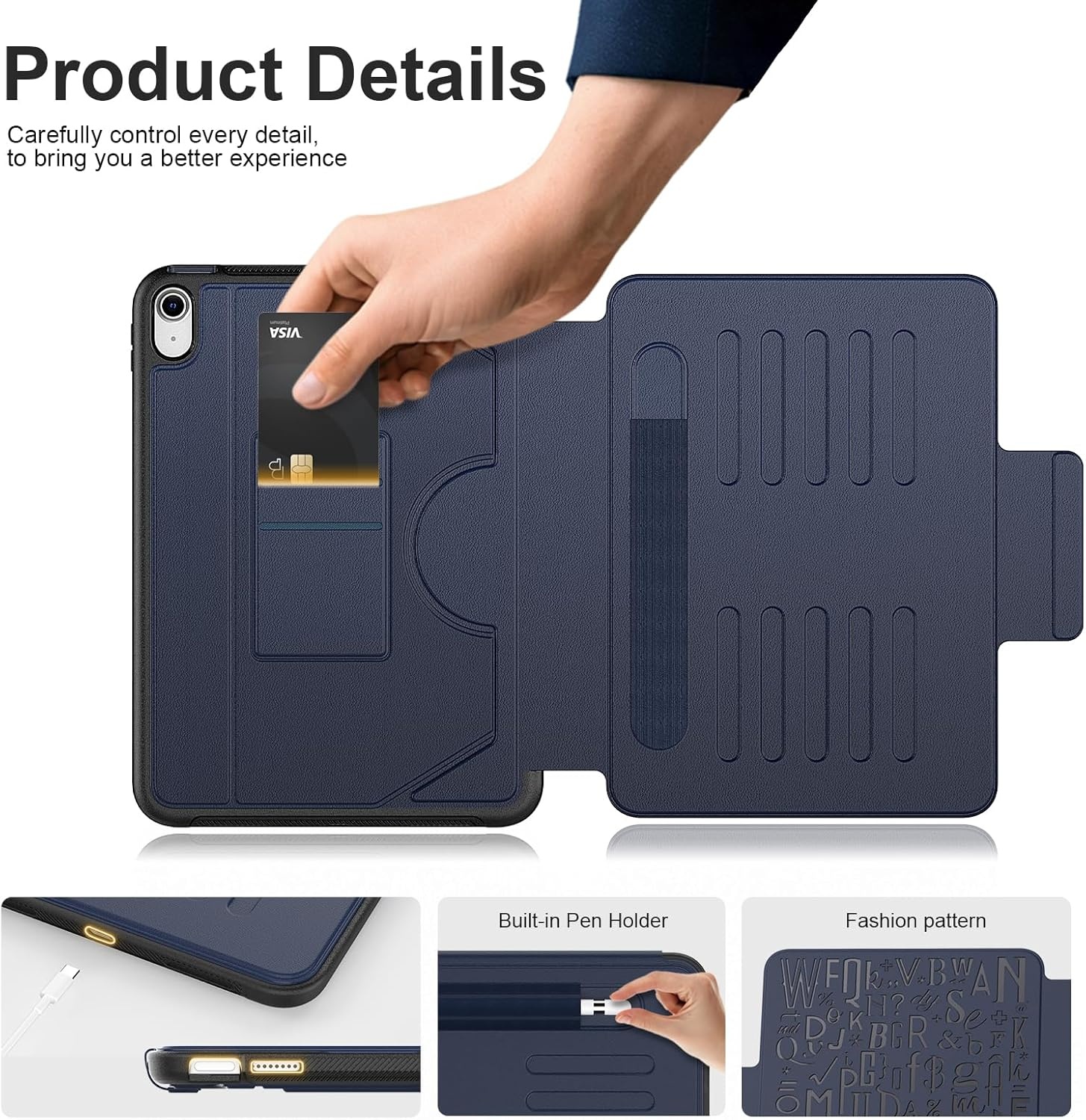 Multi-Angle Magnetic Stand: De ingebouwde magnetische standaard biedt verschillende kijkhoeken voor je iPad A16 11th Generation 2025/iPad 10th Generation 2022 (11/10.9 inch) . Of je nu films kijkt, videobelt of typt, je kunt de ideale positie vinden voor een comfortabele ervaring. De krachtige magneten zorgen ervoor dat de hoes stevig op zijn plaats blijft zonder te verschuiven.