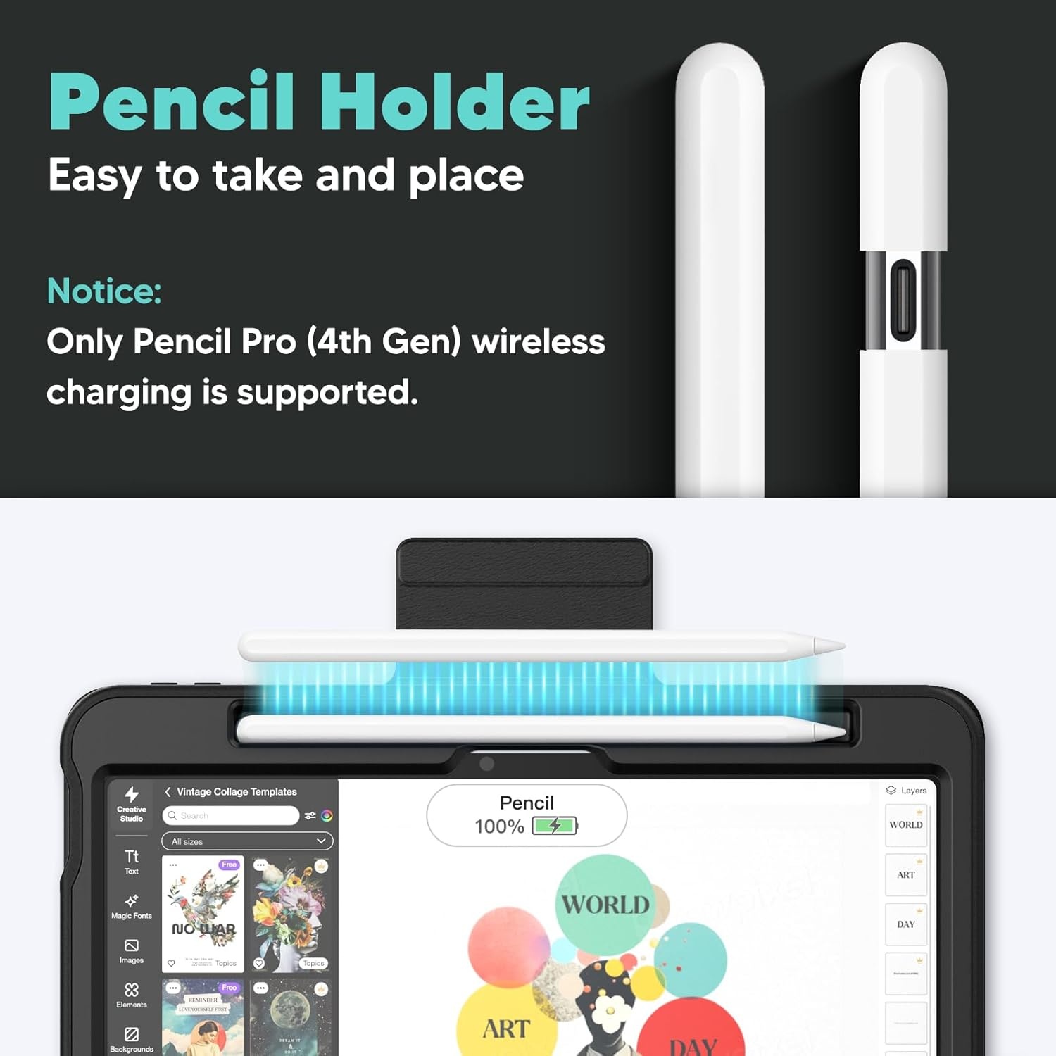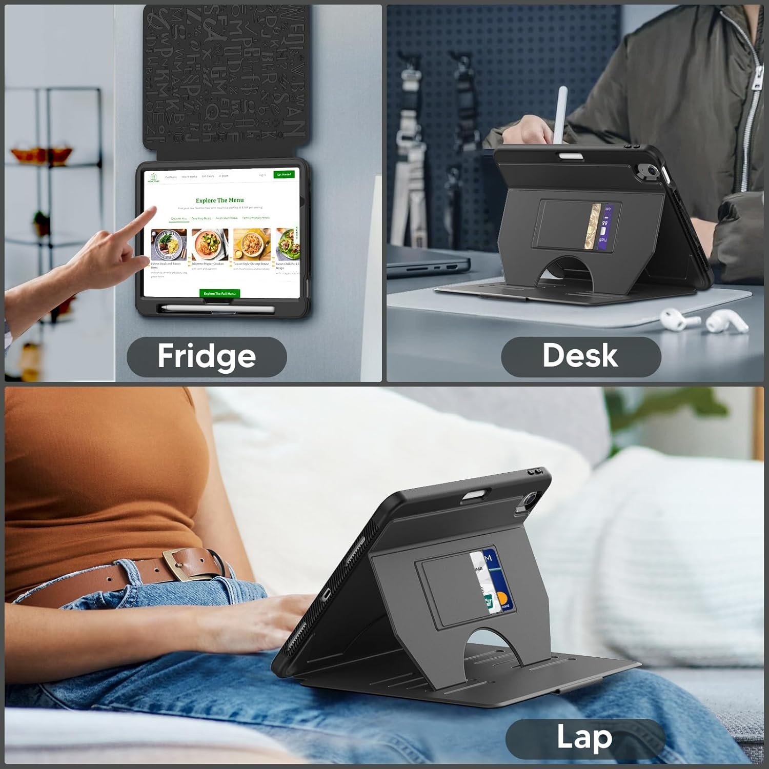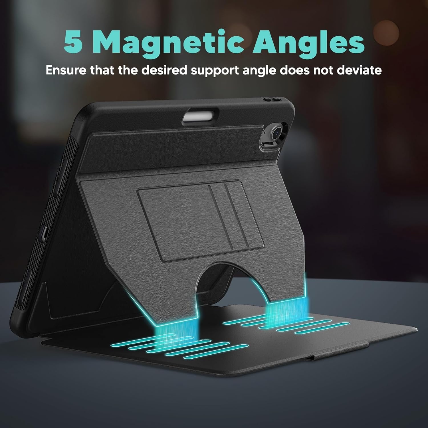 Multi-Angle Magnetic Stand: De ingebouwde magnetische standaard biedt verschillende kijkhoeken voor je iPad Air 11-Inch M3/M2 (2025/2024), iPad Air 5/4 (2022/2020 5th/4th Generation 10.9-Inch). Of je nu films kijkt, videobelt of typt, je kunt de ideale positie vinden voor een comfortabele ervaring. De krachtige magneten zorgen ervoor dat de hoes stevig op zijn plaats blijft zonder te verschuiven.
