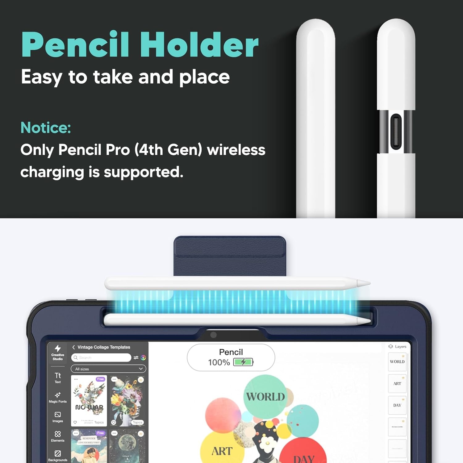 Apple Pencil Houder: De hoes beschikt over een ingebouwde houder voor je Apple Pencil, zodat je deze altijd veilig en binnen handbereik hebt. Of je nu creatief bezig bent met tekenen of notities maakt, je hoeft je geen zorgen te maken over het kwijt raken van je Apple Pencil bij je iPad Air 11-Inch M3/M2 (2025/2024), iPad Air 5/4 (2022/2020 5th/4th Generation 10.9-Inch).