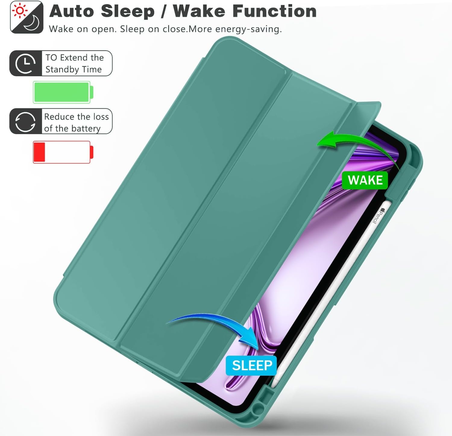 - Automatische slaap- en waakfunctie bespaart batterijduur