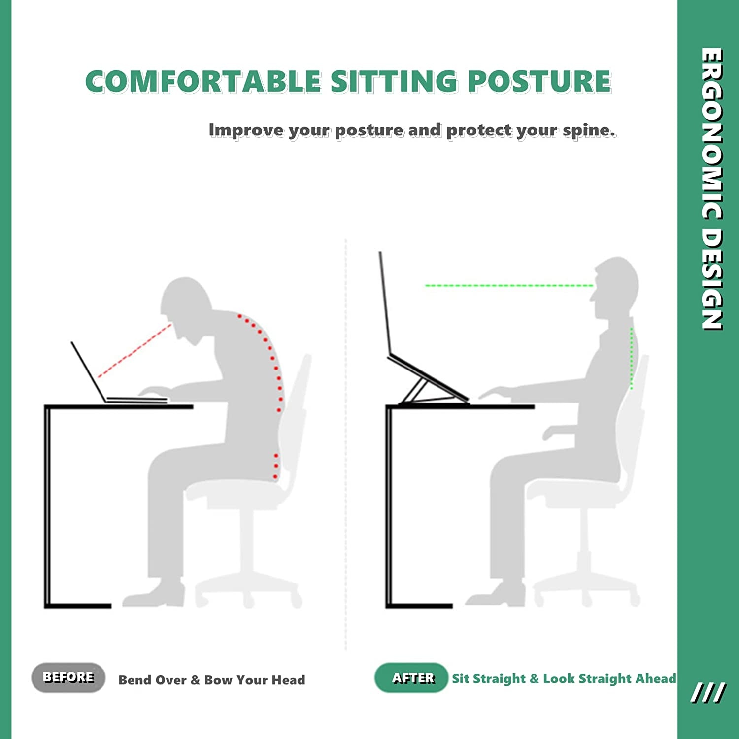 2.Stable en Protective: This verstelbare laptop stand is gemaakt van speciale plastic materialen, het is stevig, ondersteuning tot 44 lbs (20kg), geen zorgen geen wiebelen op alle; rubberen pads op de boven-en onderkant veilig uw laptop op zijn plaats en voorkomen krassen.