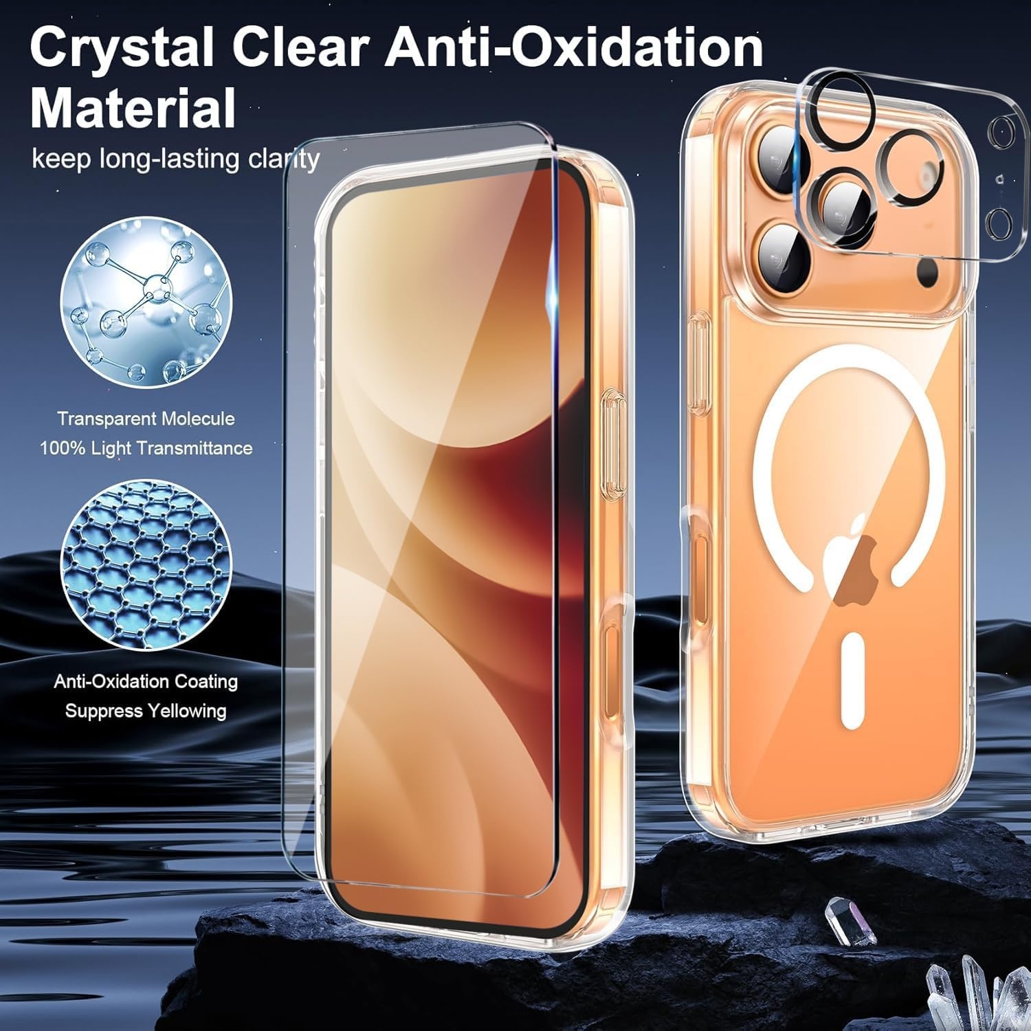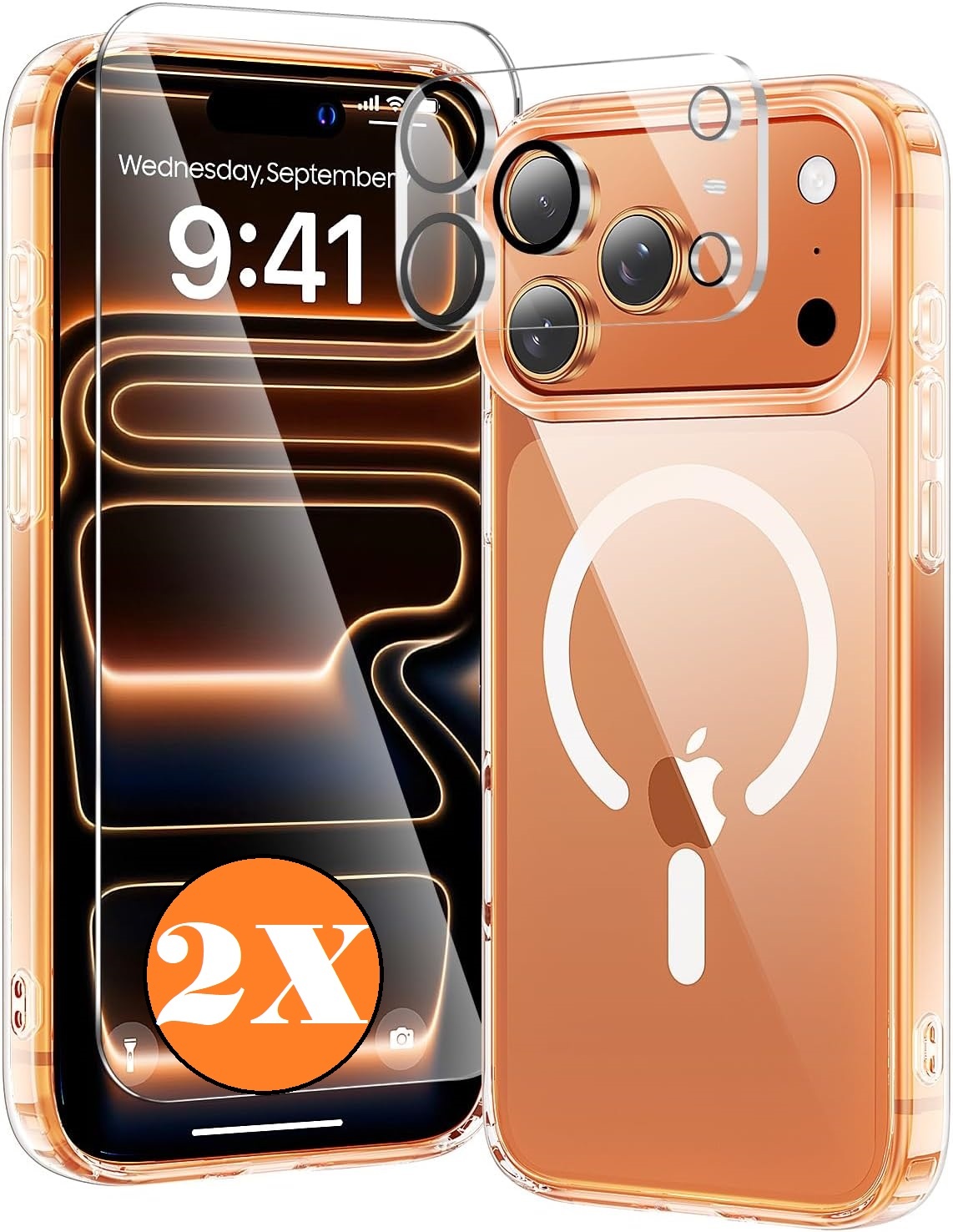 Transparant Hoesje Geschitk voor iPhone 17 Pro en MagSafe – Silicone Case met 2x Screenprotector & Camera Lens Bescherming