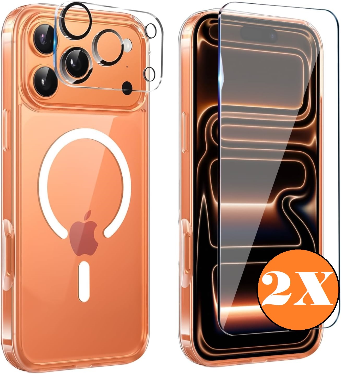 Transparant Hoesje iPhone 17 Pro Max Hoesje Geschikt voor MagSafe – Silicone Case met 2x Screenprotector & Camera Lens Bescherming