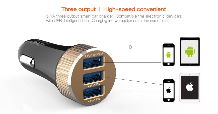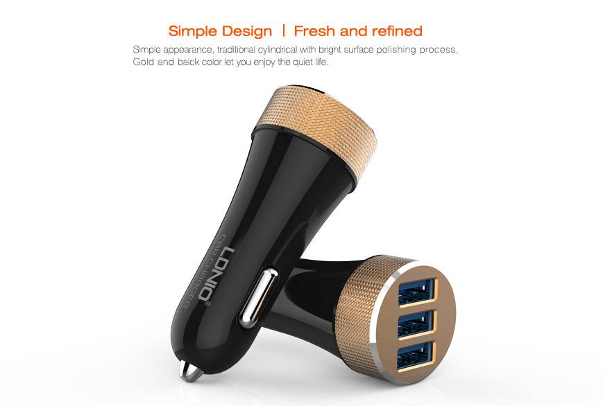 Triple USB 5.1A Fast Charging Car Charger - Black