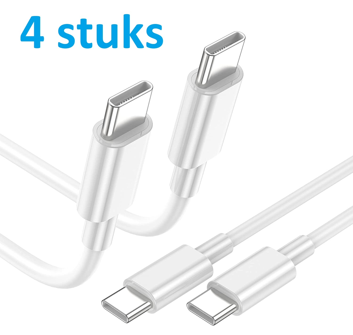 usb a naar usb c kabel - usb c kabel - Oplaadkabel Geschikt voor Samsung 1meter - 4 stuks Wit