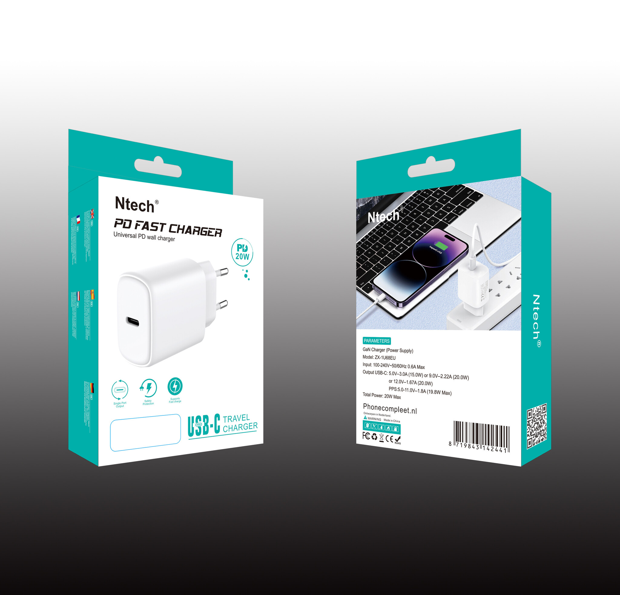 Dankzij de geavanceerde GaN (Gallium Nitride) technologie levert de Ntech adapter krachtige prestaties in een verrassend compact ontwerp. Met 20W Power Delivery laad je je iPhone tot wel 50% op in slechts 30 minuten. Perfect voor onderweg, thuis of op kantoor.