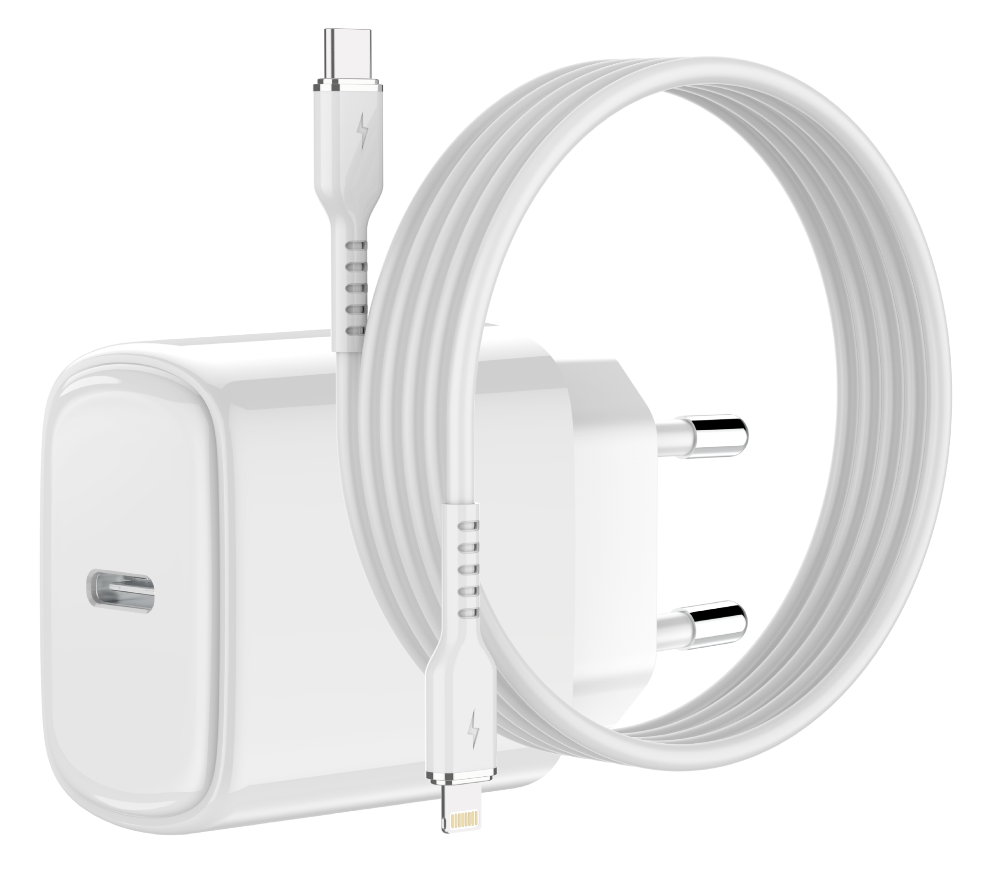 Ntech 20W GaN USB-C Adapter met 1m Siliconen USB-C naar Lightning Kabel – Supersnel, Compact en Duurzaam
