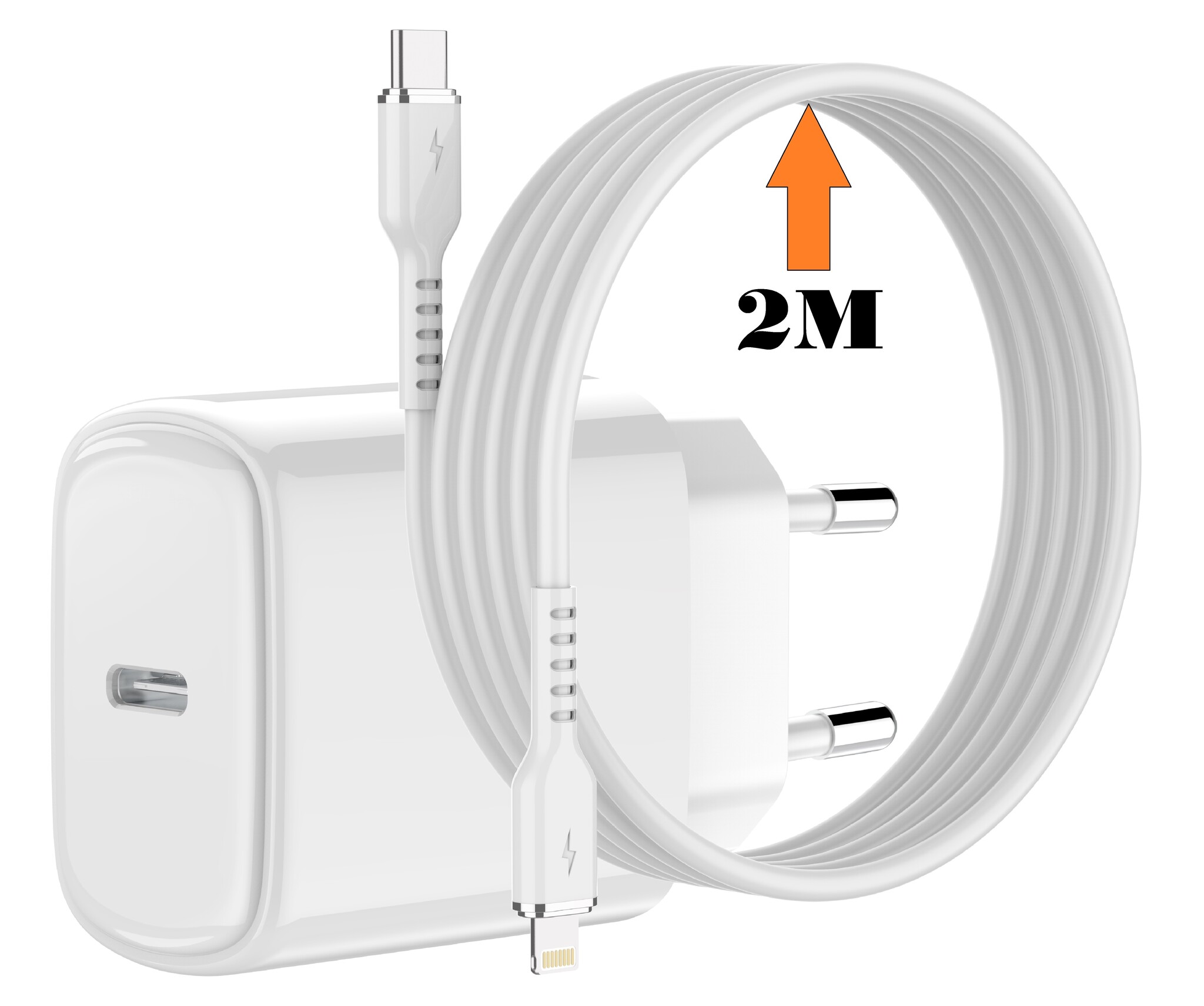 USB C Adapter / 20W iPhone Oplader met 2M USB C naar Lightning Kabel Geschikt voor iPhone 14 / SE / 14 Pro/ 14 Max/ 13/ 13 Pro/ 13 Pro Max/ 12/ 11/ Xr/ Xs Max/ 8/ 8 Plus/ Pro - Oplader / Snellader geschikt voor Apple iPhone
