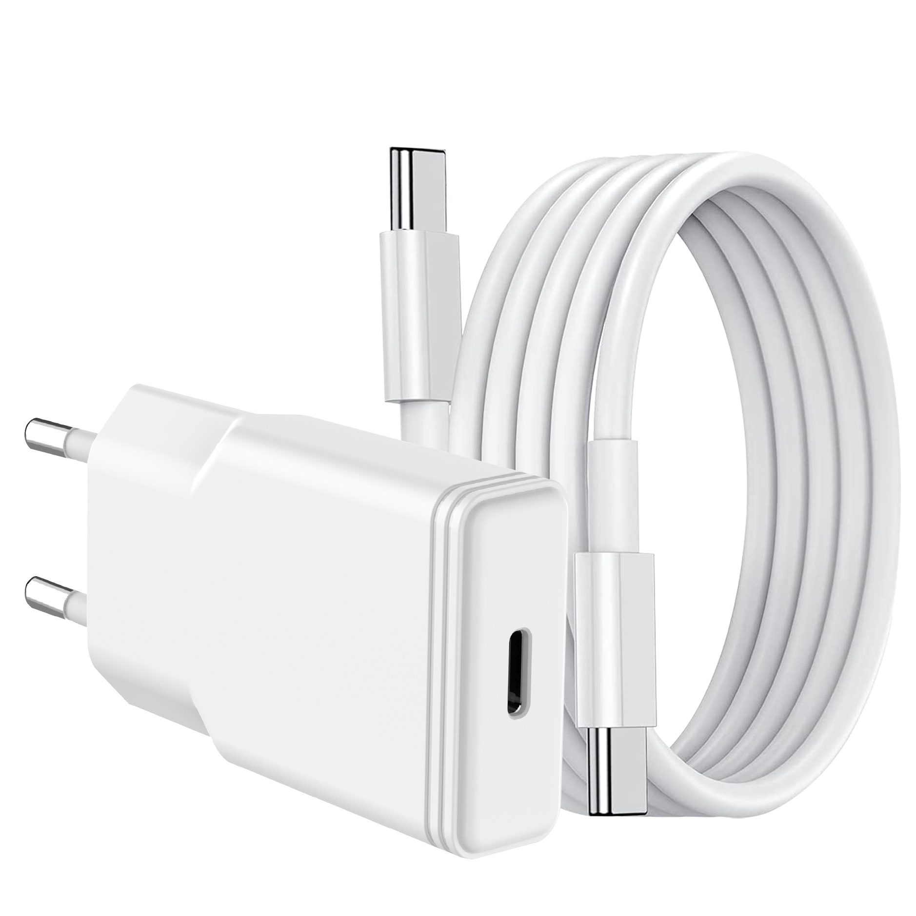 USB C Adapter 20W snellader met (1m) USB C naar USB C kabel Geschikt voor Samsung Galaxy A56 / A36 / A26 / S25 / S25 Ultra / S25 Edge / A16 / A25/A34/A35/A53/ A54 / A55 / S22 / S23 FE / S24 / S24 Ultra / S24 FE / iPhone 15 / 15 Pro / 16 / 16 Pro Max