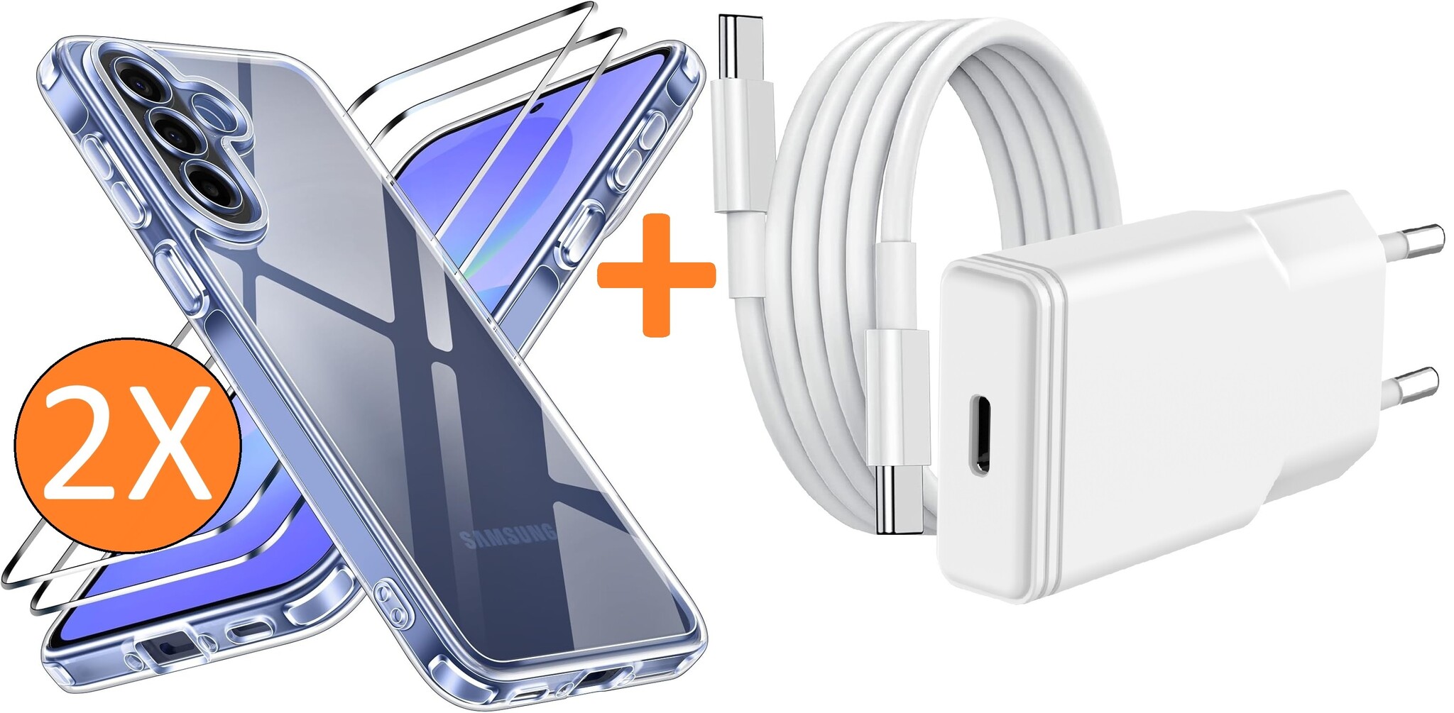 USB C Adapter 20W - USB C Snellader Met 1M USB C Kabel - Hoesje Geschikt voor Samsung Galaxy A57 transparant Anti Shock silicone hoesje met 2x screenprotector- Ntech COMBI-SET