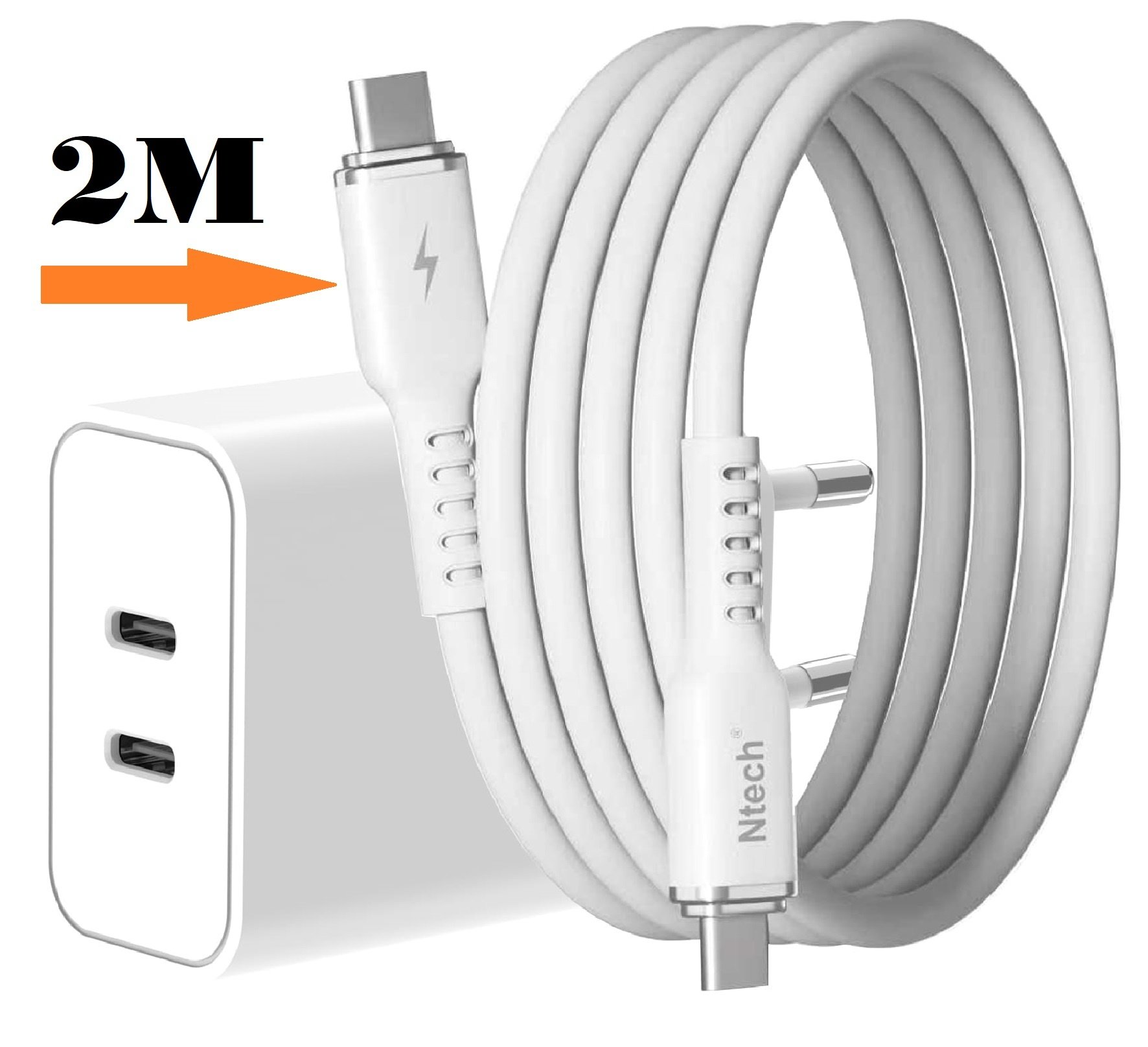 USB C Adapter 35W - USB C Oplader 2 poorten met 2M Kabel Geschikt voor iPhone 17/ 17 Pro / 16 Pro / 15 / 15 Pro Max - Oplader Samsung A56/A36/A17/A26/A16/S25/S24 ultra/S23/S22/S25 FE/ Tab A11 Plus/ A9 Plus - Dual Poorten USB C Adapter - USB C Lader