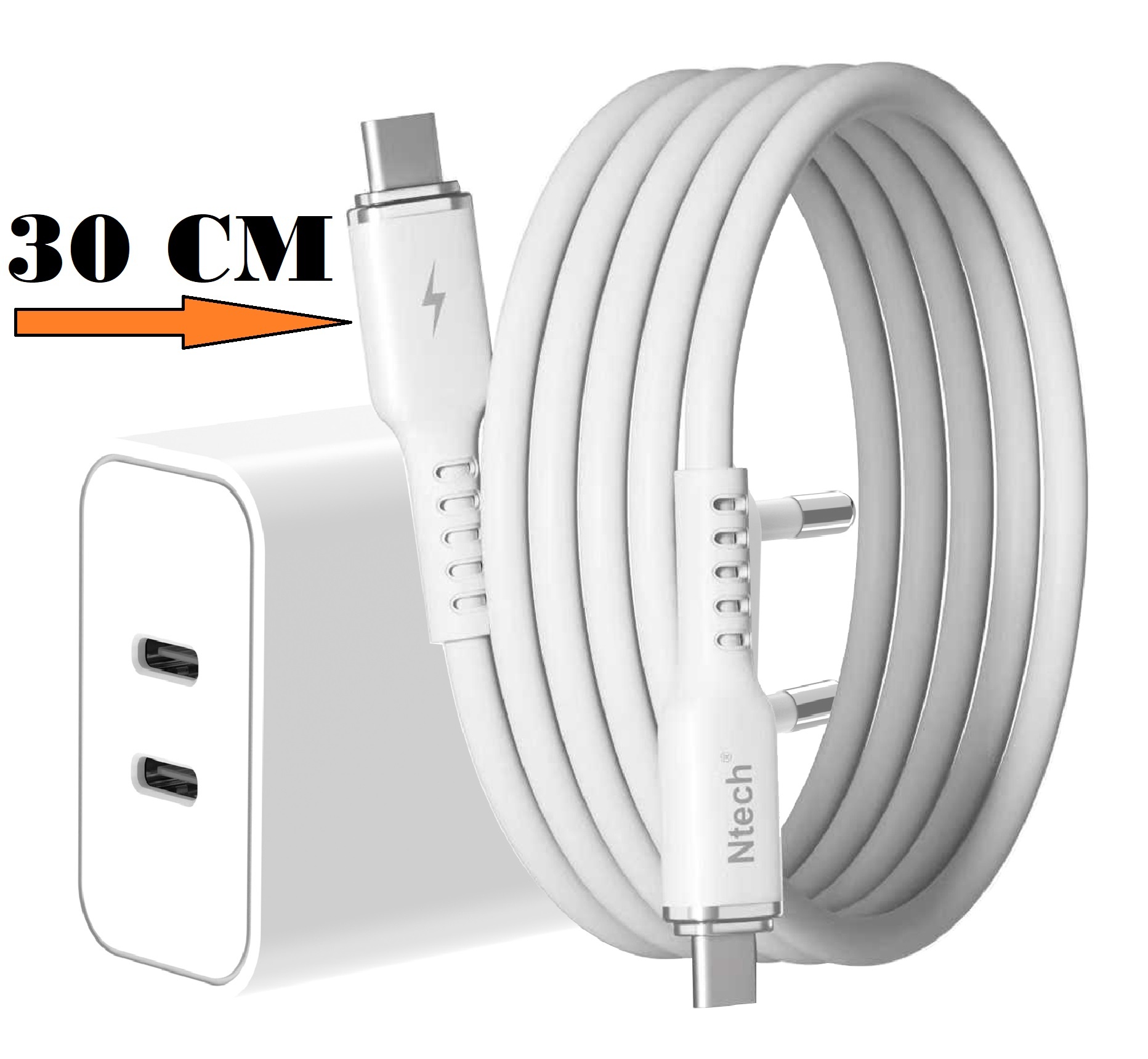 USB C Adapter 35W - USB C Oplader 2 poorten met 30cm Kabel Geschikt voor iPhone 17/ 17 Pro / 16 Pro / 15 / 15 Pro Max - Oplader Samsung Galaxy S25/S24/S23/S22/S25 FE/ Tab A11 Plus/ A9 Plus - Snellader - Dual Poorten USB C Adapter - USB C Lader