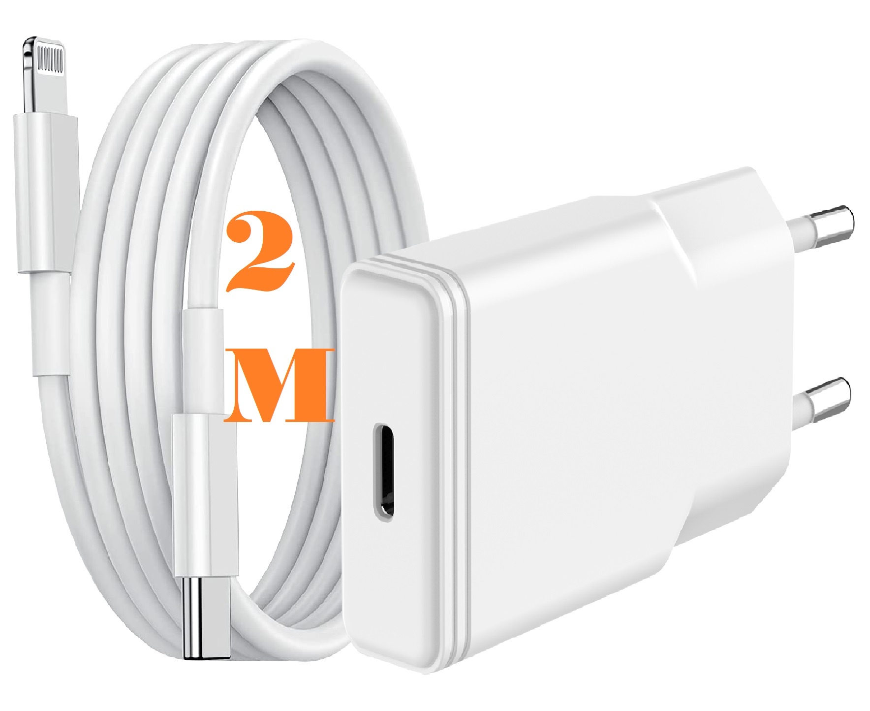 20W USB-C Adapter met 2M Lightning naar USB-C Kabel – Snelle Oplader voor iPhone 14, 13, 12, 11 en Meer