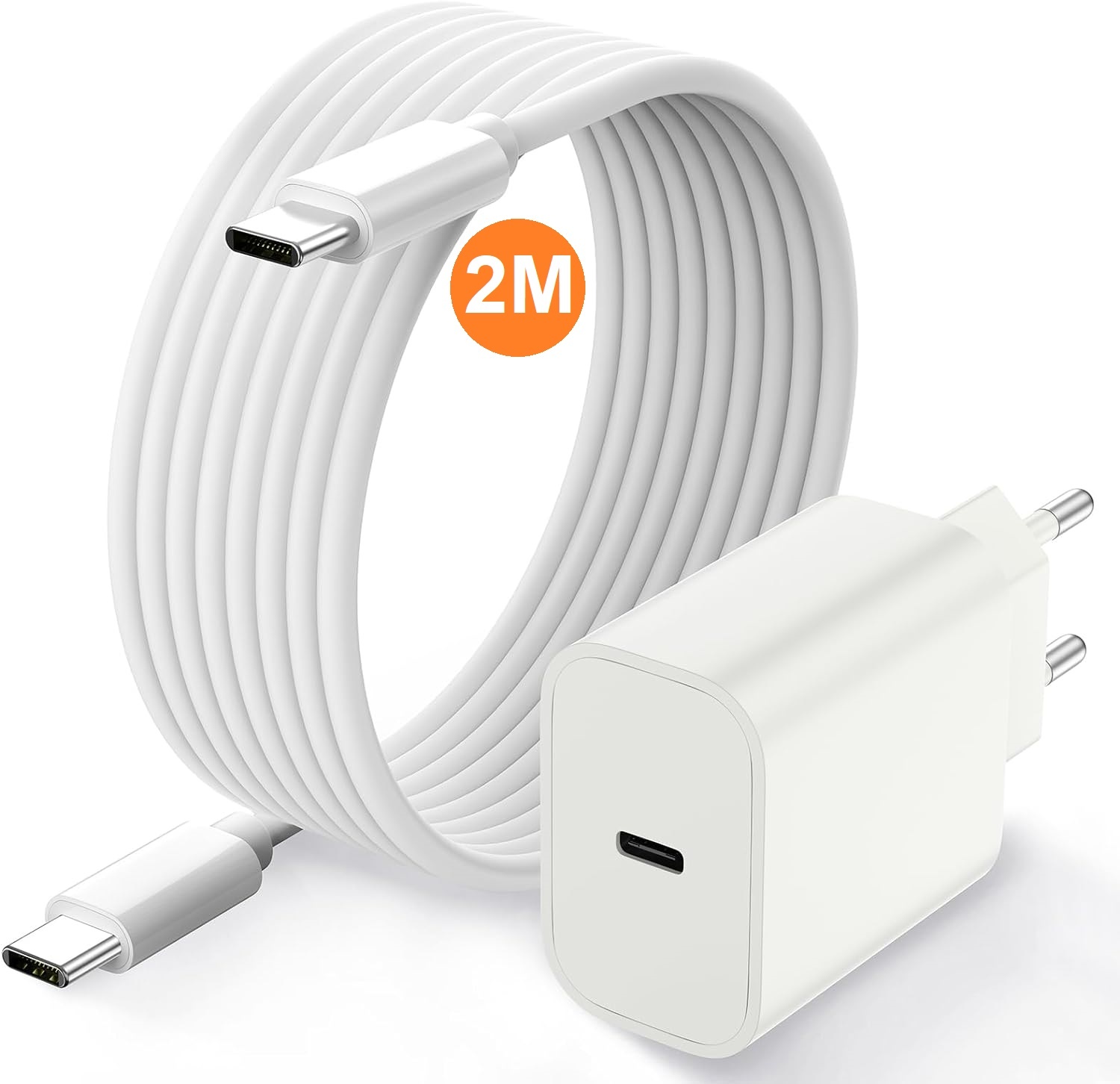USB C Adapter 20W snellader met USB C naar USB C kabel 2M - Wit