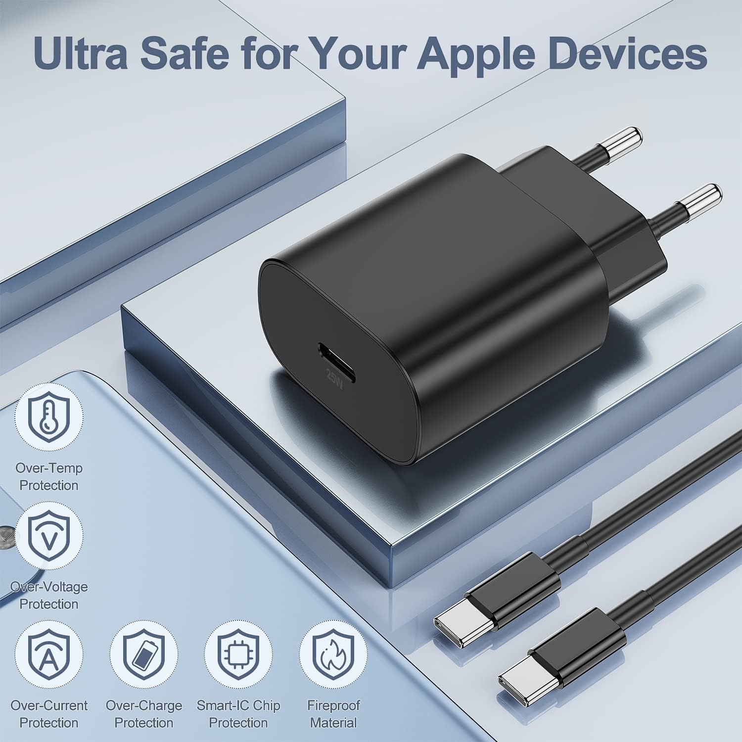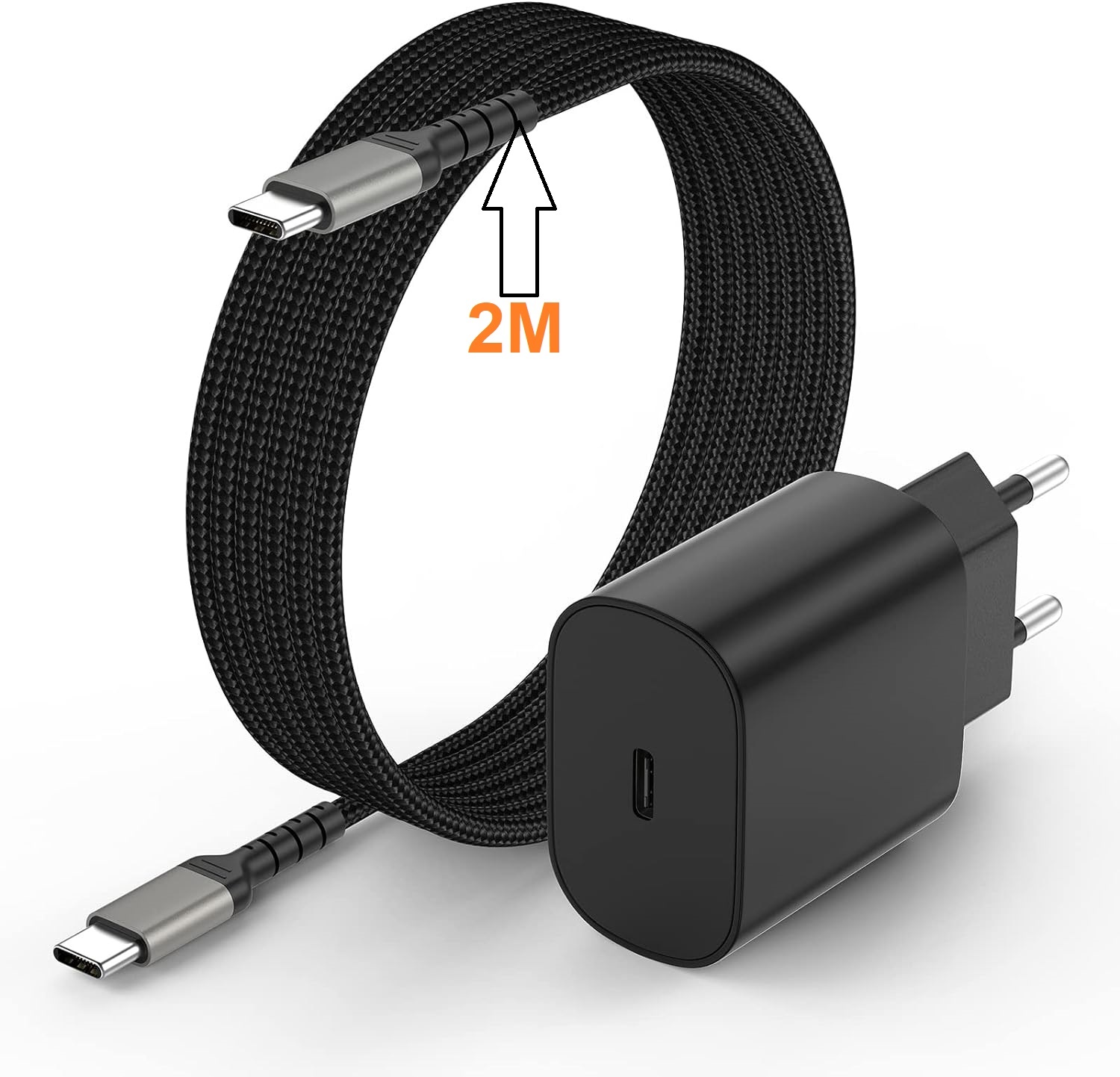 USB C Adapter + USB C kabels 2M - 25W Oplader - USB stekker - USB C - USB C Oplader - Zwart