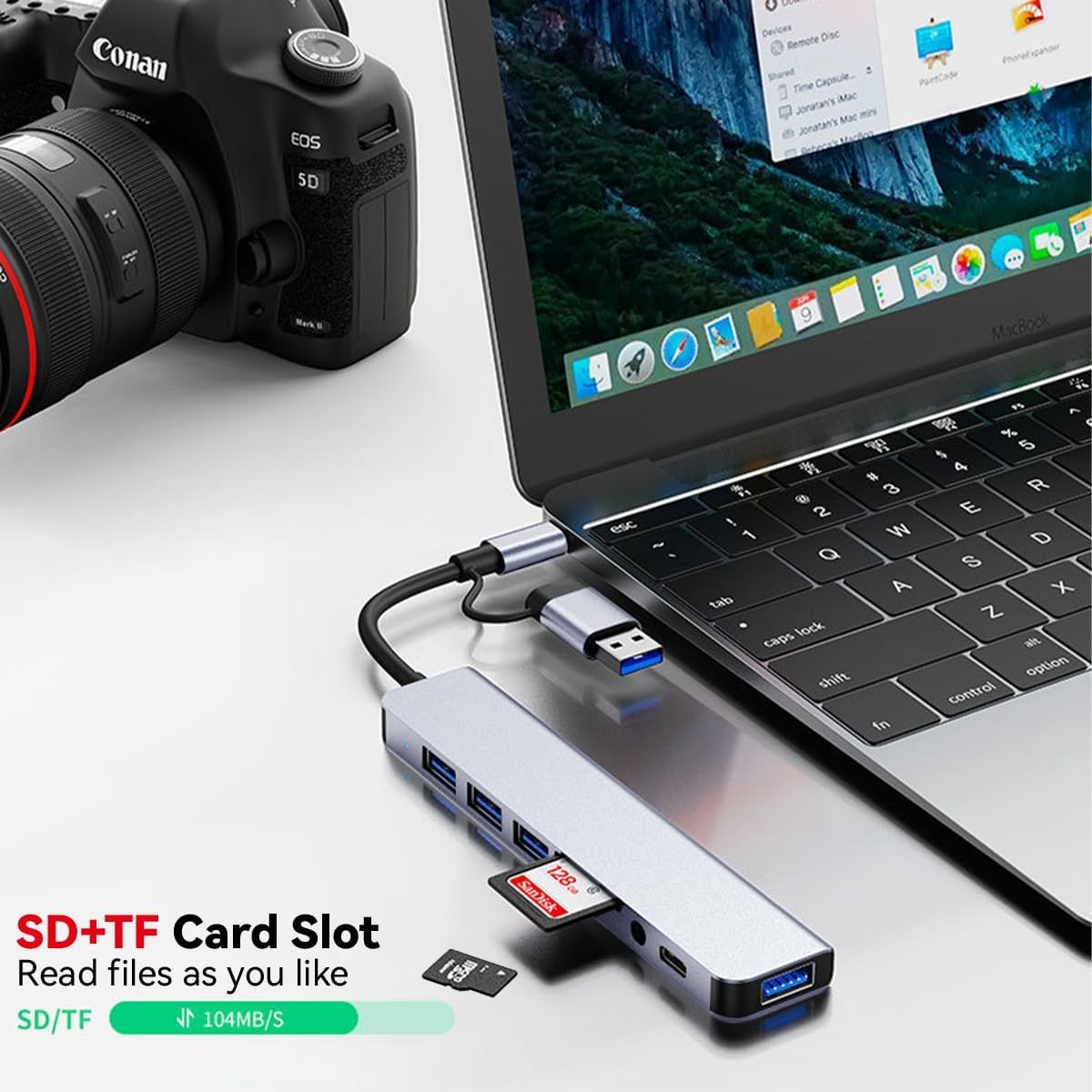 usb c hub - docking station laptop - 8 in 1 USB Extender Met 4 USB Port 1 USBC Jack TF/SD Card Reader 3.5mm Audio Output, MacBook Pro/iPad Pro/iPhone 17 /16 /15/Laptop/Galaxy/ XPS, Surface, PC/Laptop/Tablet Accessories