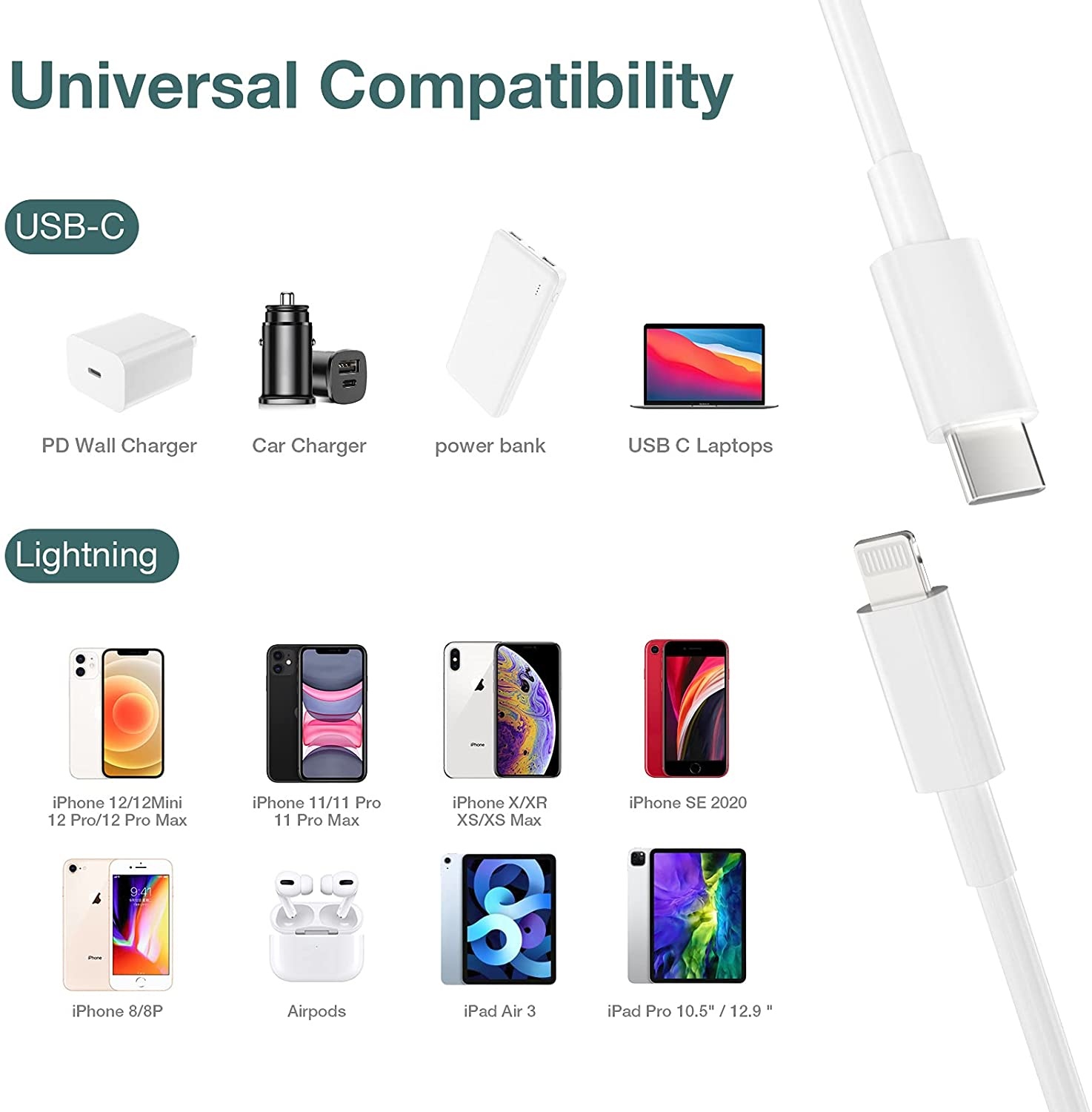 Het is mogelijk om alle Geschikt voor iPhone 5 en iPad modellen op te laden met deze oplaadkabel.