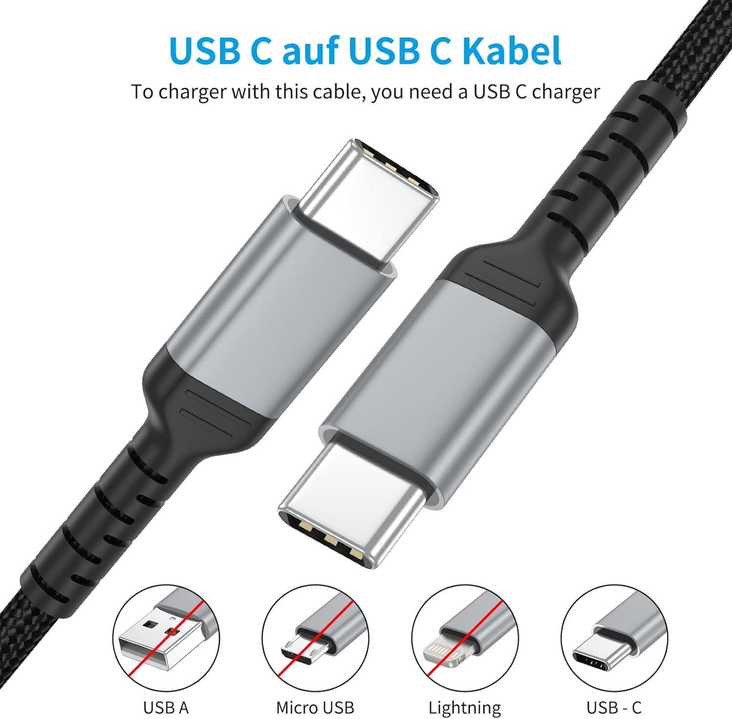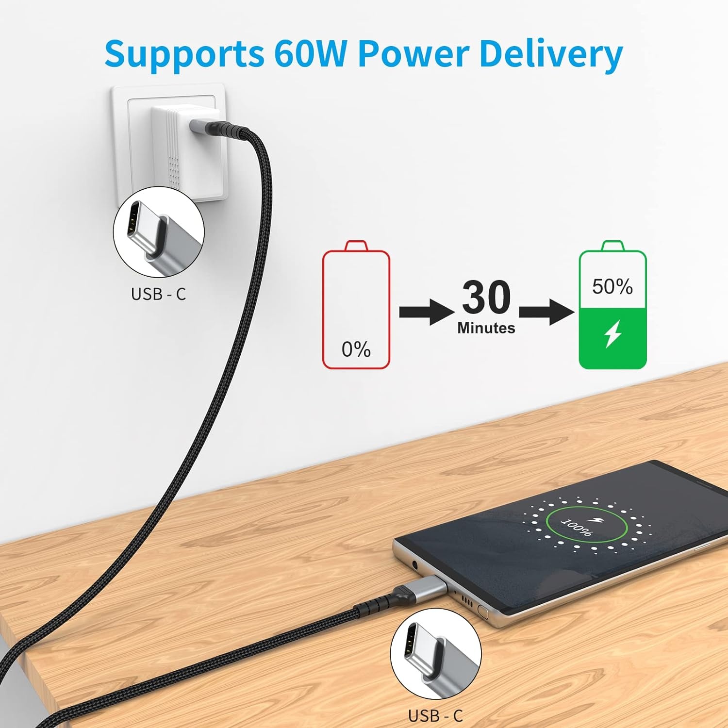 USB C naar USB C kabel oplader - USB C 60w oplader 1m Kabel Zwart - Nylon Oplaadkabel