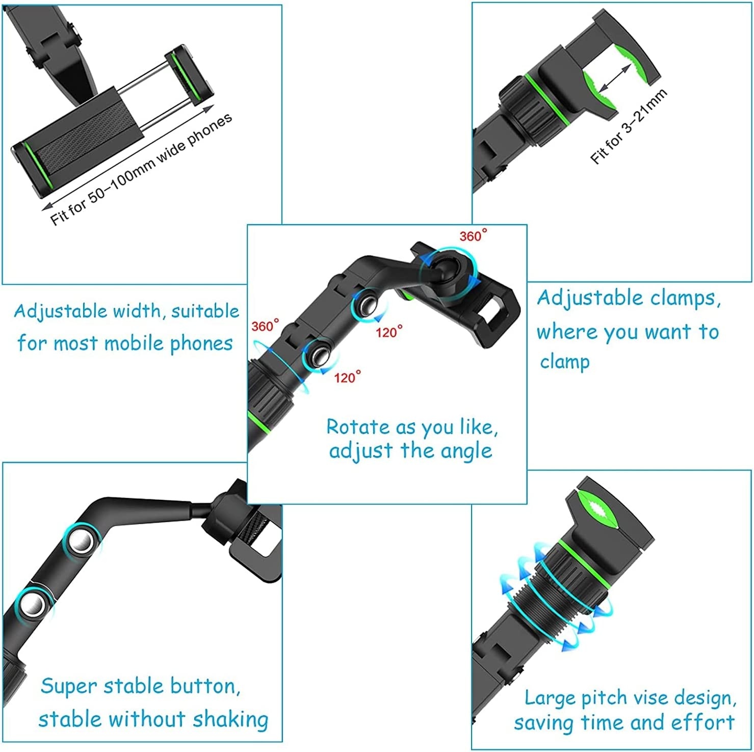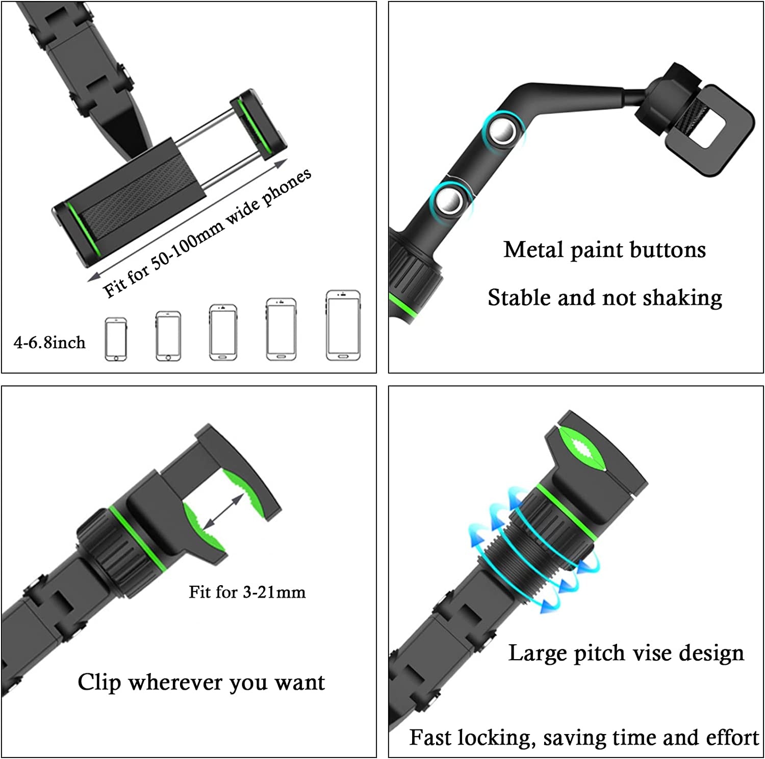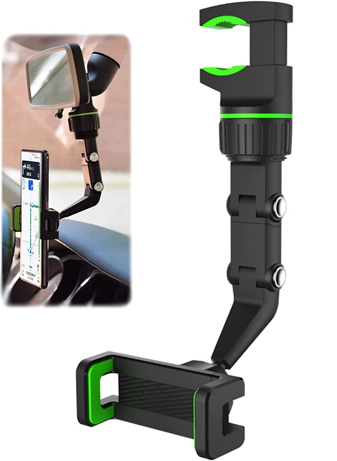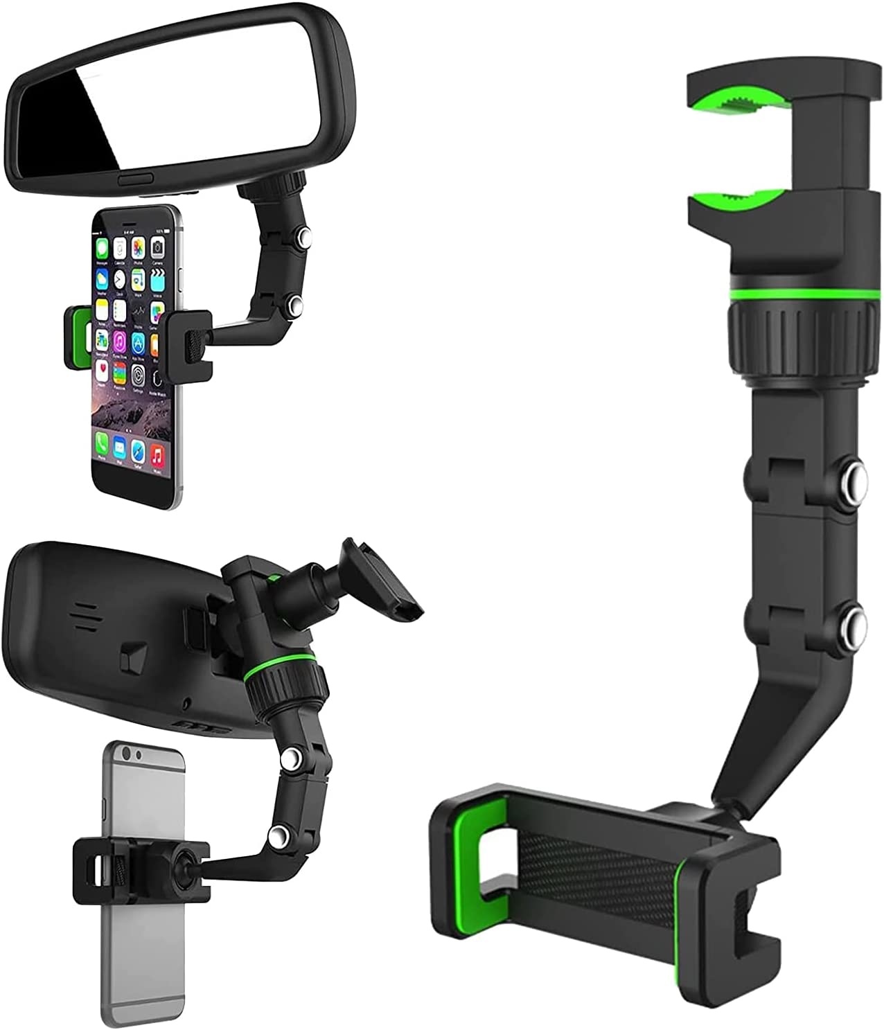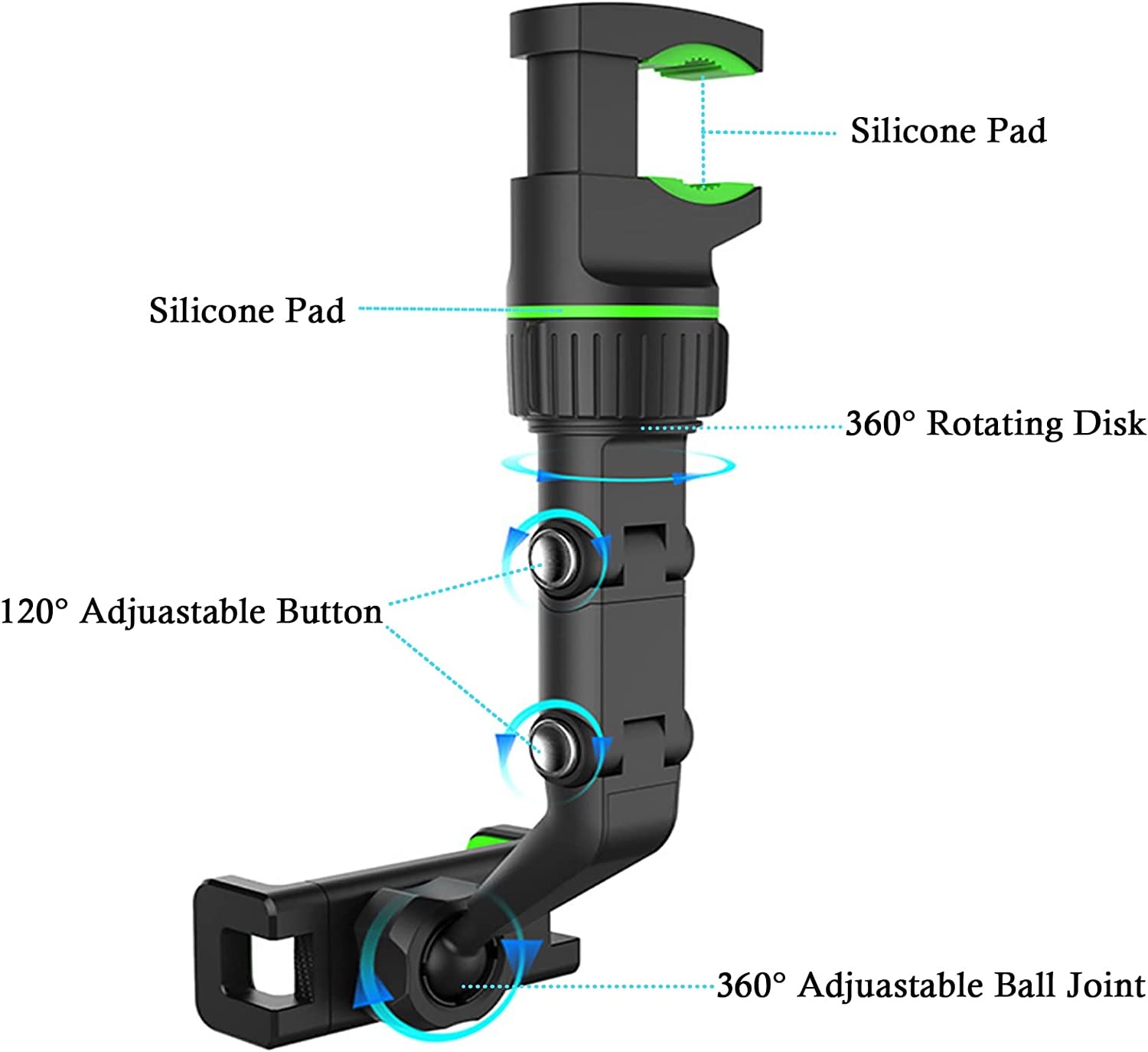 De telefoonhouder / Smartphone telefoon houder is gemaakt van hoge kwaliteit ABS materiaal om maximale sterkte en duurzaamheid voor lange blijvende gebruik. Deze achteruitkijkspiegel telefoonhouder in meerdere hoeken kan gedraaid en 360 graden geroteerd worden om de positie van de telefoon, waardoor het handiger te gebruiken. Het bereik van de clipbreedte is 5 - 25 mm, een groter bereik van toepassing op grote clipafstanden.