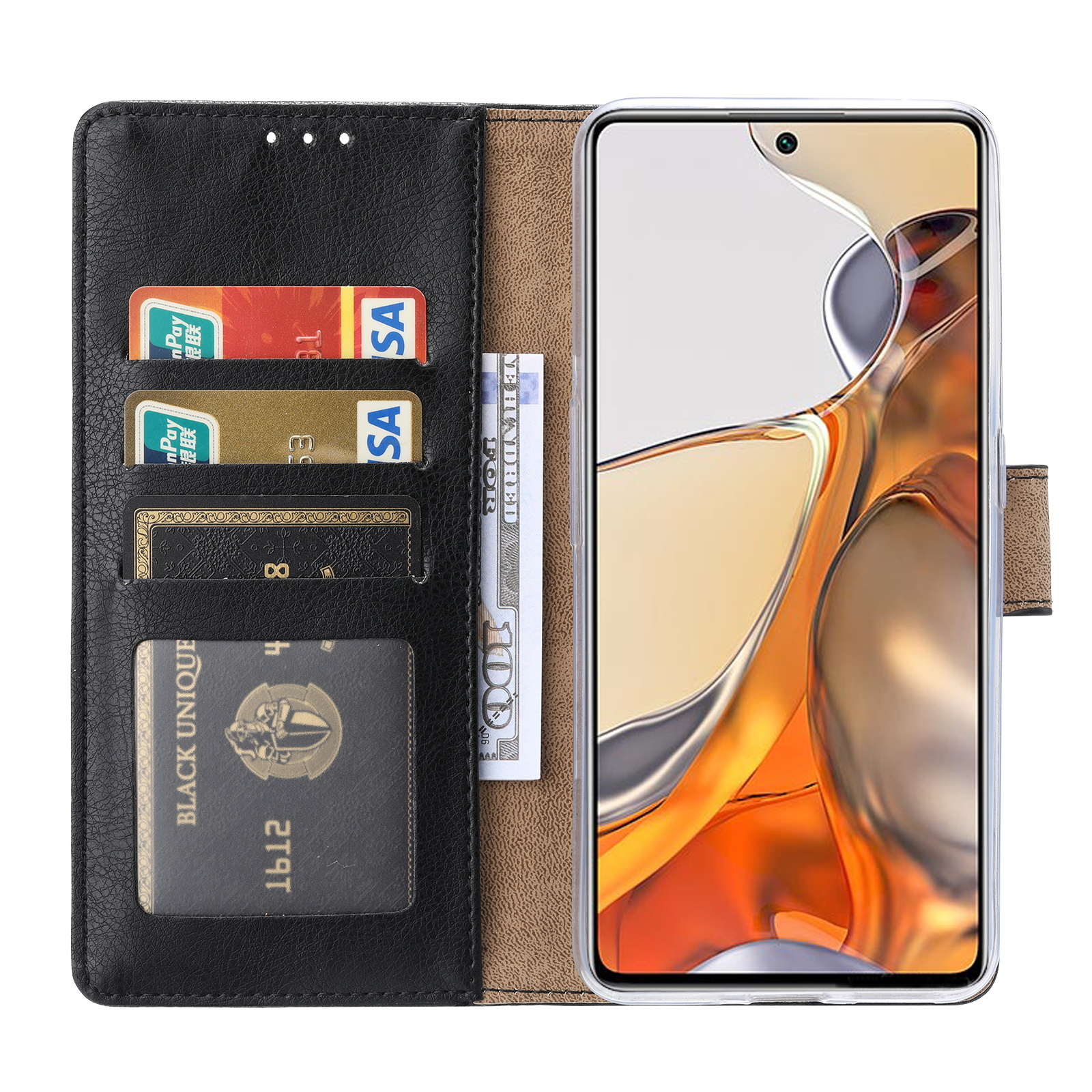 Hoesje Geschikt voor Xiaomi 11T PRO Hoesje met Pasjeshouder Zwart - Hoesje Geschikt voor Xiaomi Redmi 11T PRO hoesje Luxe Booktype Portemonnee case