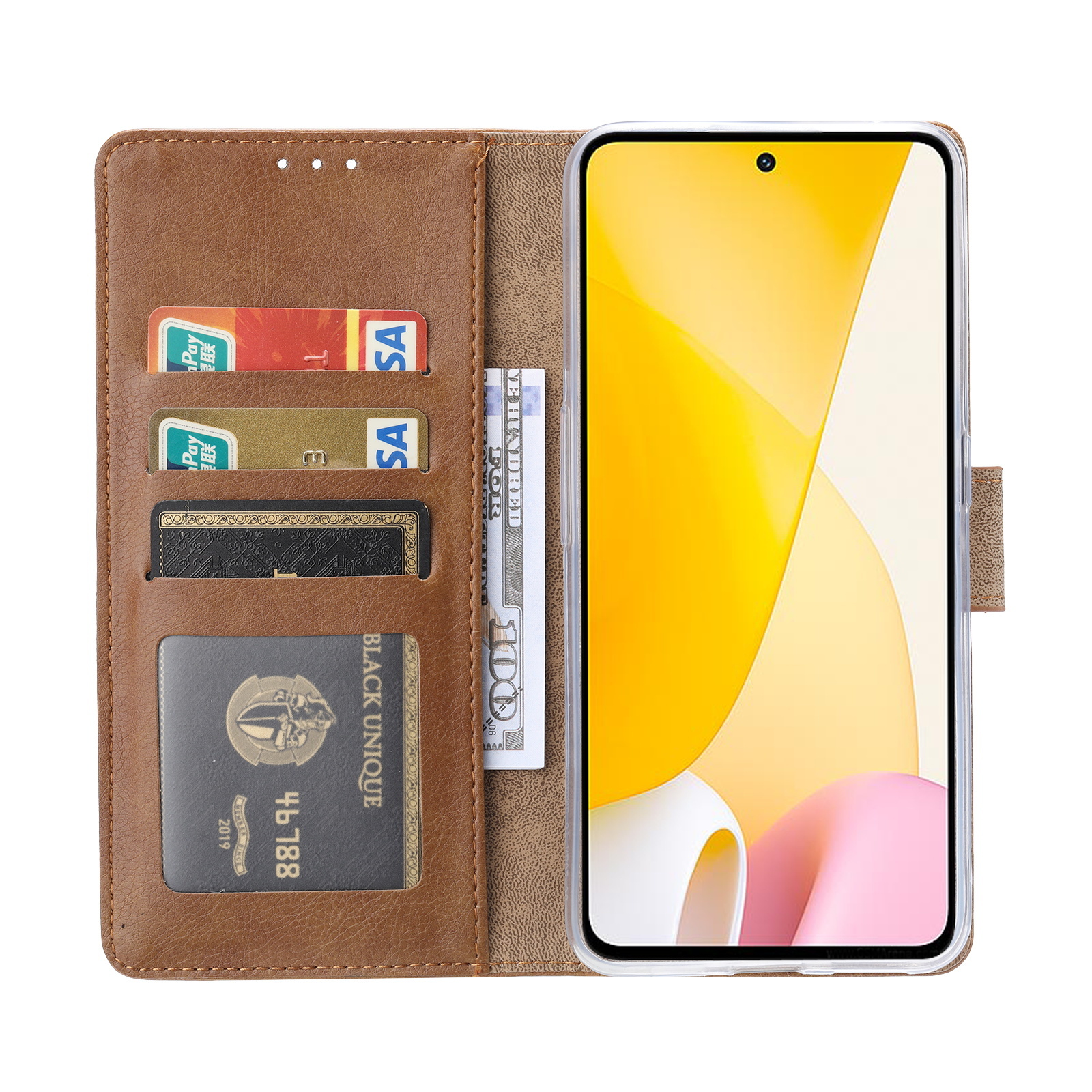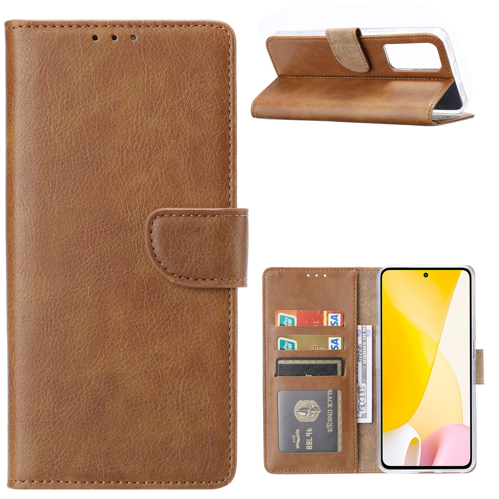 Hoesje Geschikt voor Xiaomi 12 Lite Hoesje met Pasjeshouder Bruin - Hoesje Geschikt voor Xiaomi 12 Lite hoesje Luxe Booktype Portemonnee case
