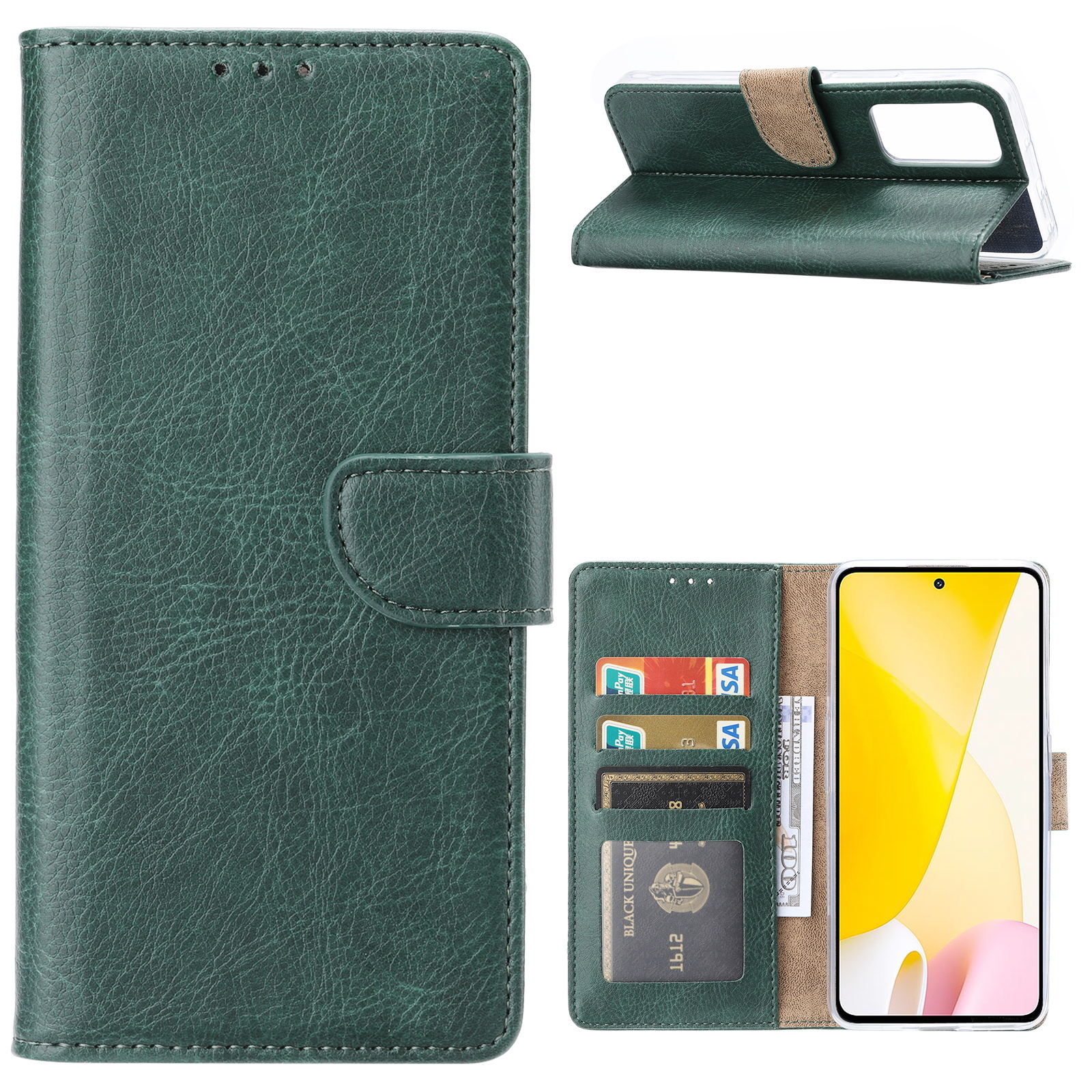 Hoesje Geschikt voor Xiaomi 12 Lite Hoesje met Pasjeshouder Groen - Hoesje Geschikt voor Xiaomi 12 Lite hoesje Luxe Booktype Portemonnee case