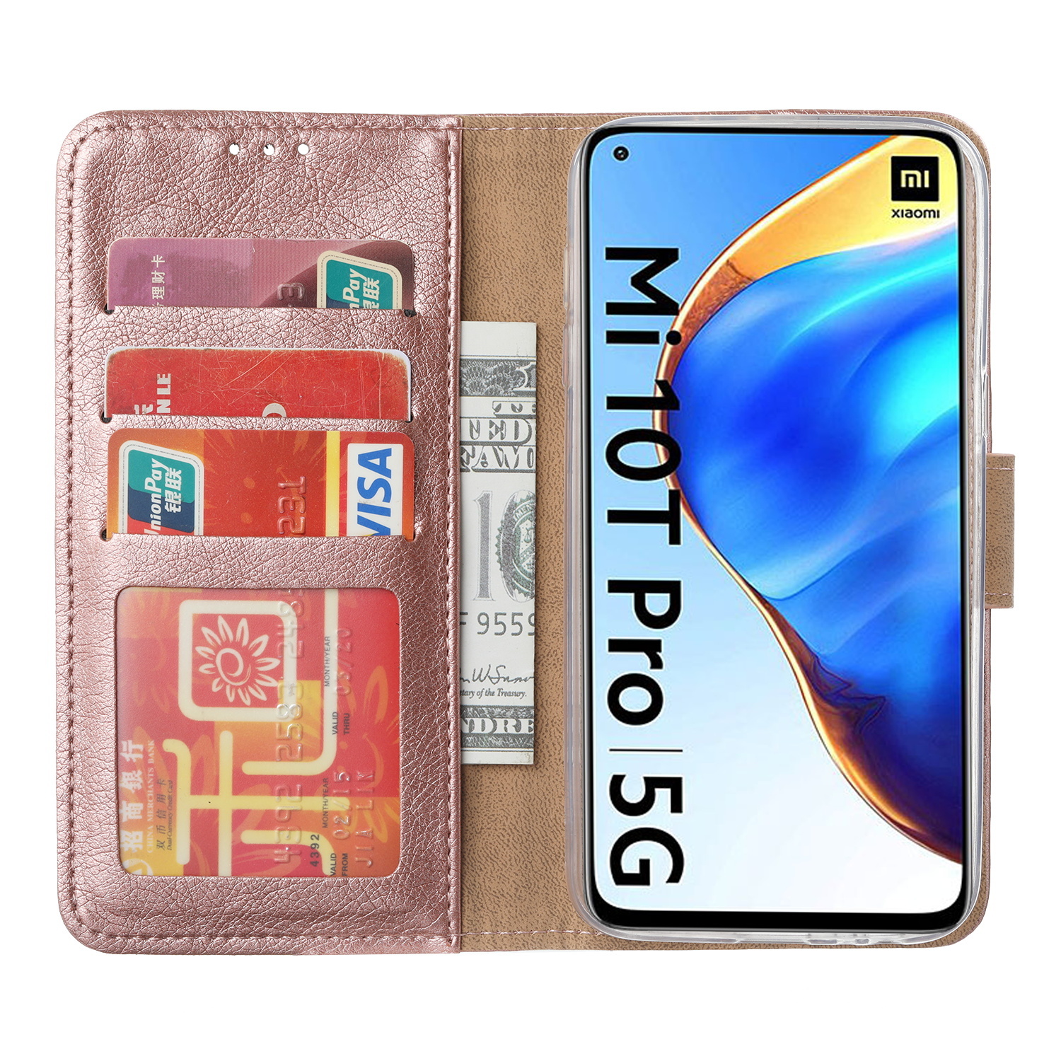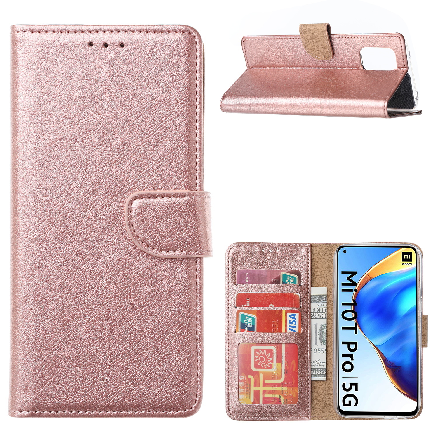 Hoesje Geschikt voor Xiaomi Mi 10T / Mi 10T Pro 5G Hoesje met Pasjeshouder portemonnee cover / bookcase - Rose Goud