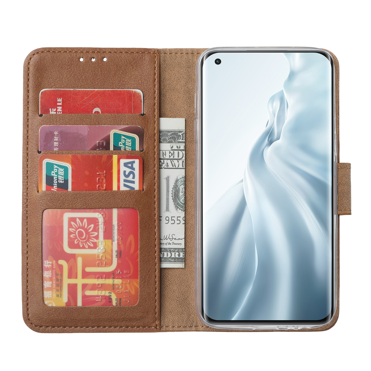 Hoesje Geschikt voor Xiaomi Mi 11 Hoesje - Mi 11 bookcase cover met Pasjeshouder - Bruin