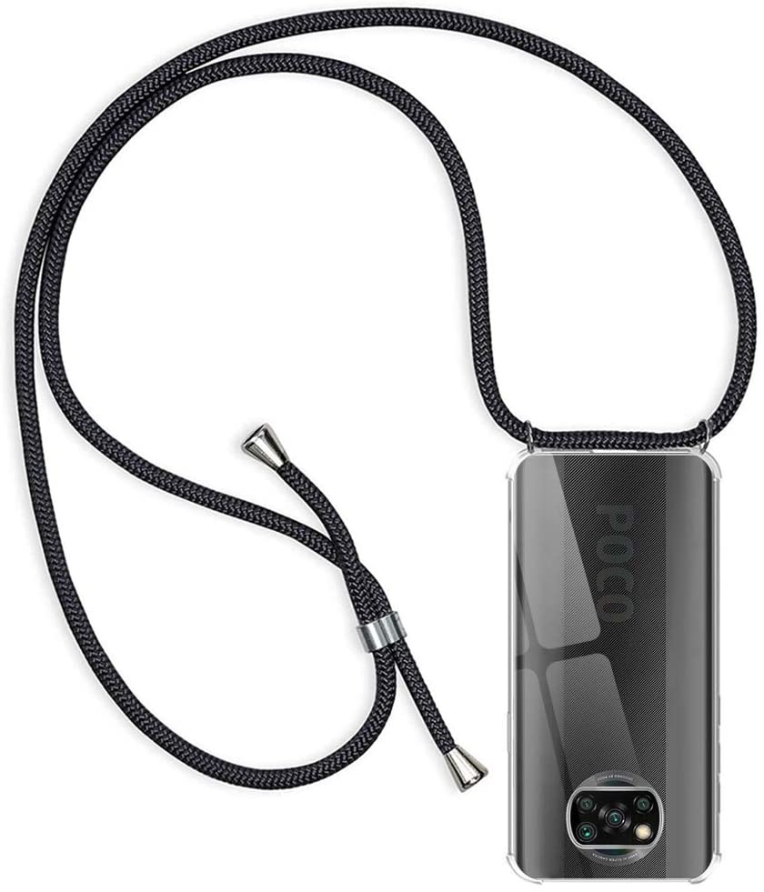 Xiaomi Poco X3 Hoesje transparant met draagkoord - Poco X3 NFC Koord hoesje TPU backcover - Zwart