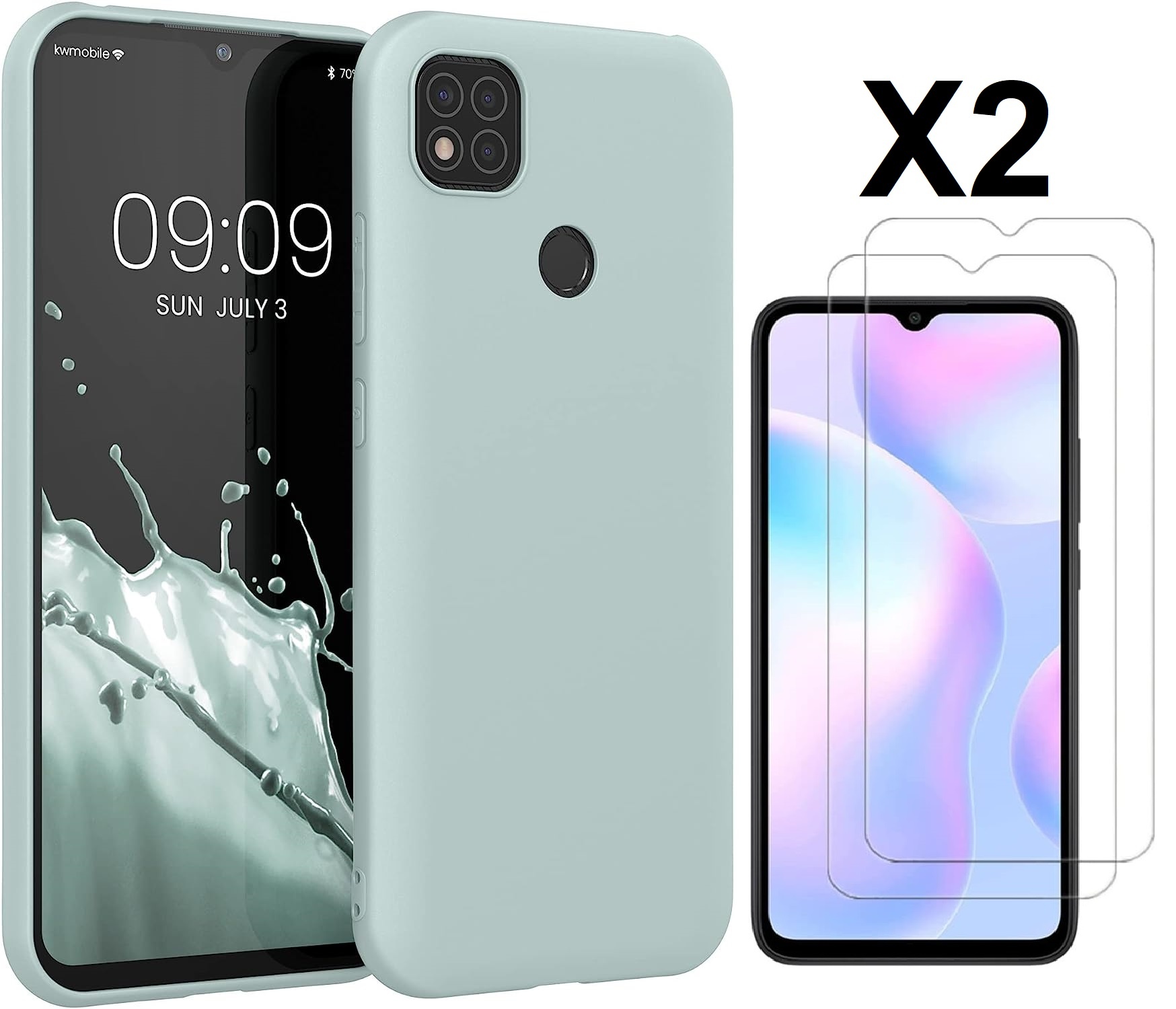 Hoesje geschikt voor Xiaomi Redmi 10A/9C Hoesje siliconen Mint Groen zacht siliconen hoesje TPU backcover - met Redmi 10A/9C Screenprotector - 2 stuks