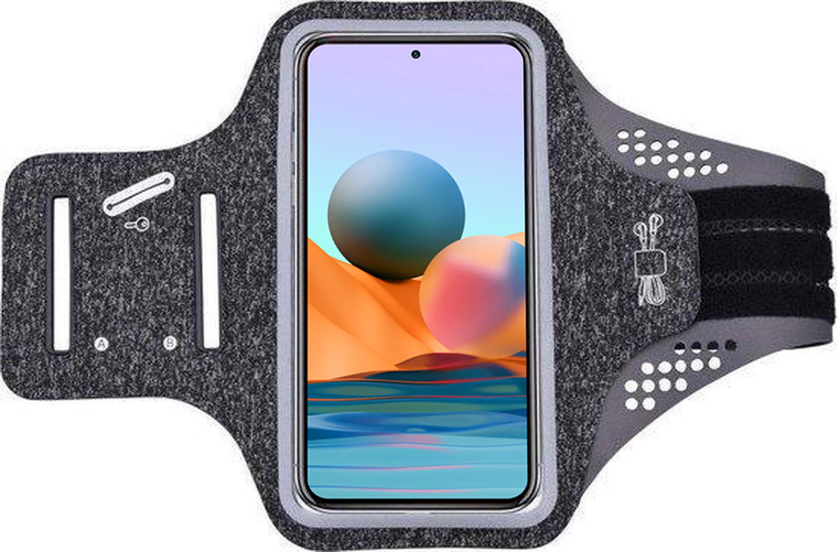 Hoesje Geschikt voor Xiaomi Redmi Note 10S hardloop telefoonhouder – armband - sportband - van stof - Zwart