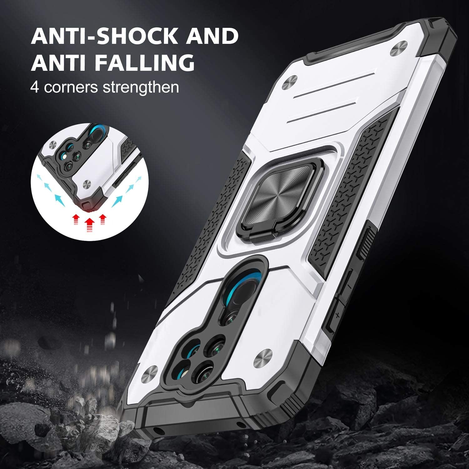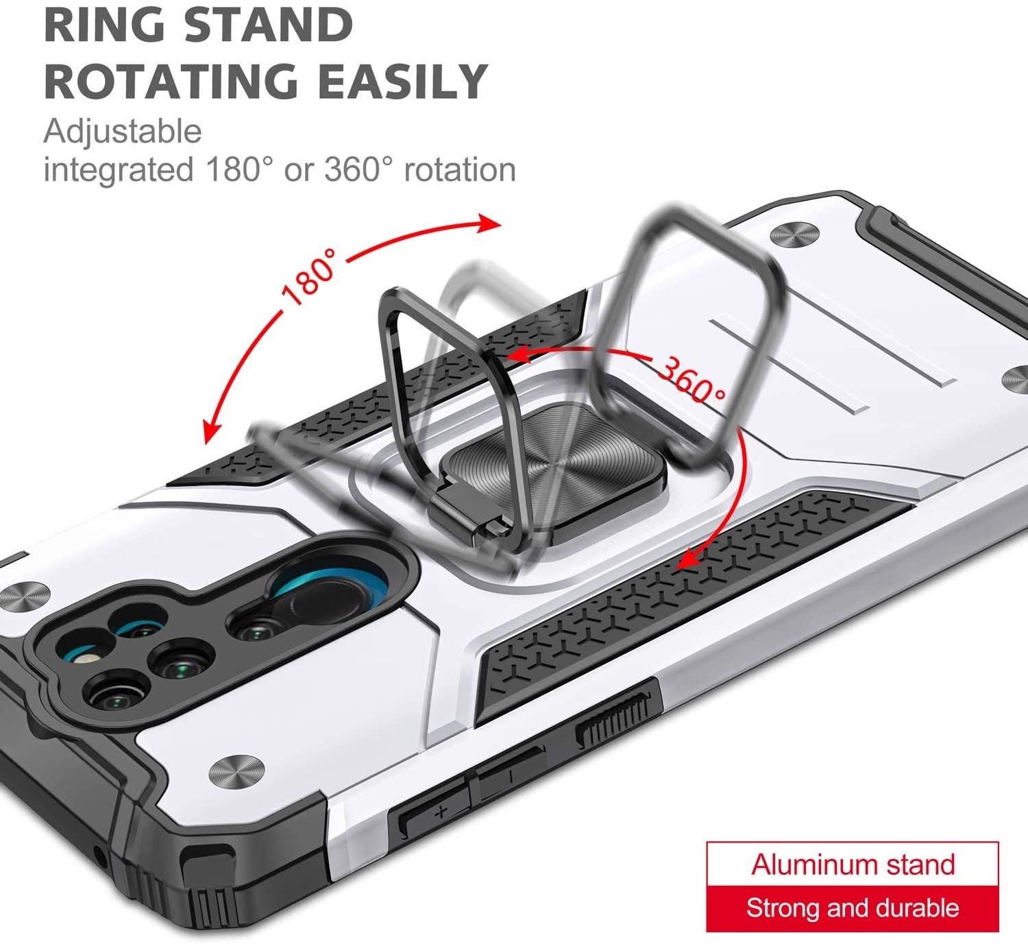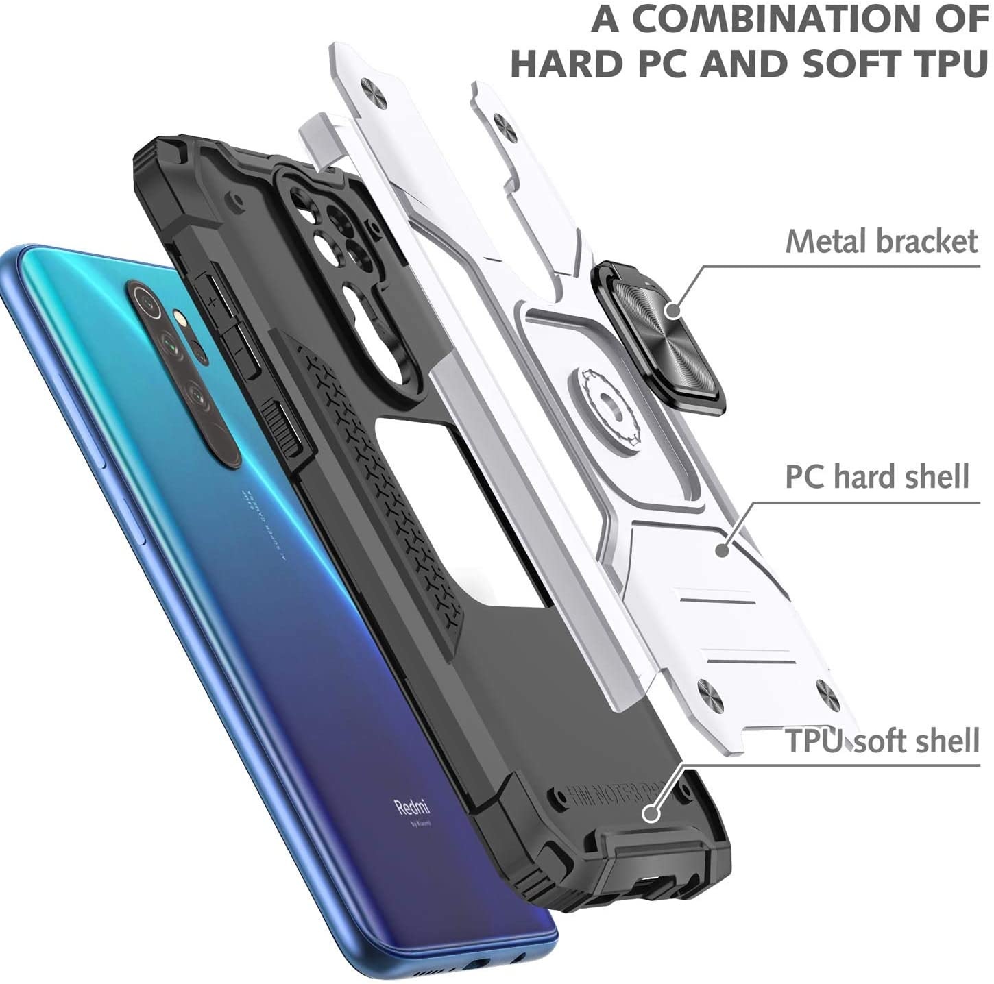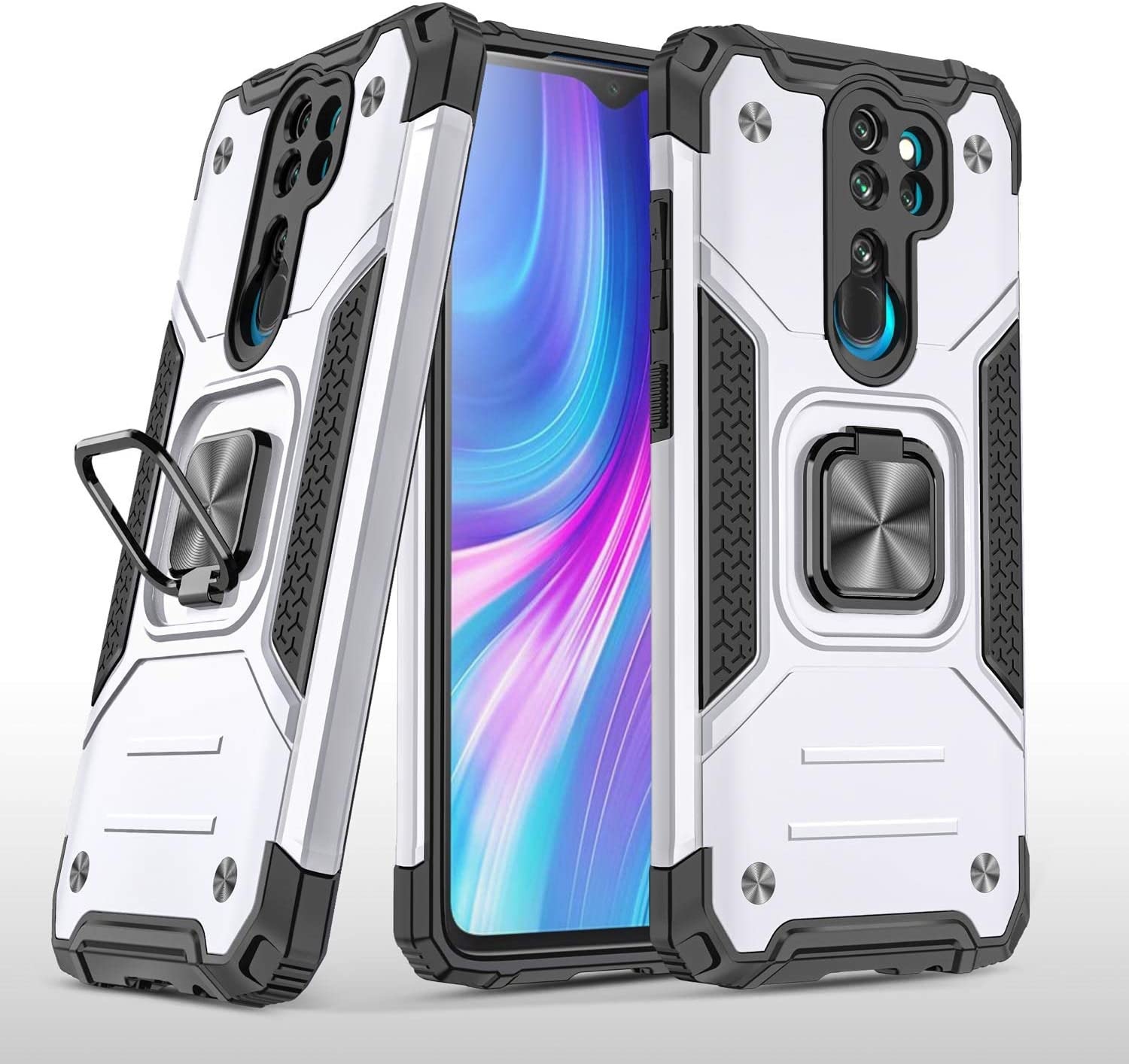 Xiaomi Redmi Note 8 Pro Hoesje - Heavy Duty Armor hoesje Zliver - Redmi Note 8 Pro silicone TPU 360-Degree hybride hoesje Kickstand ringhouder met Magnetisch Auto Mount