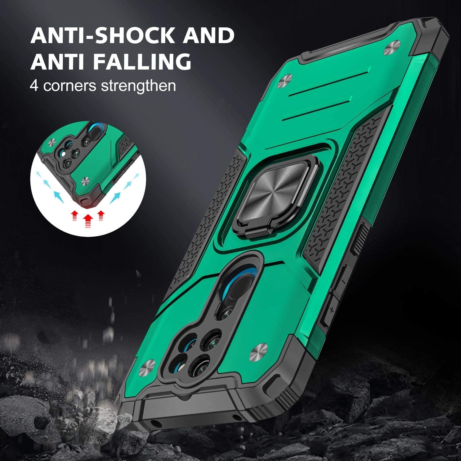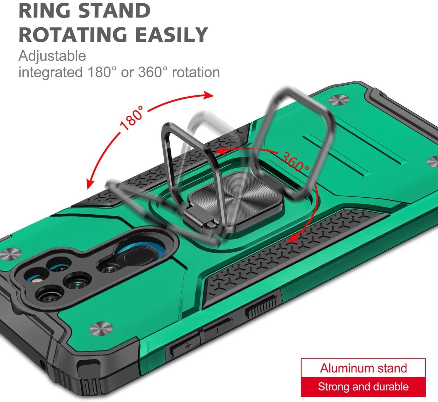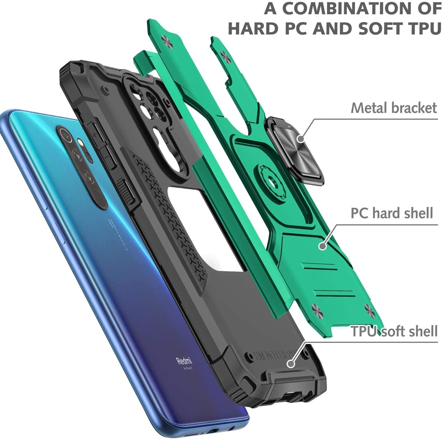 Xiaomi Redmi Note 8 Pro Hoesje - Heavy Duty Armor hoesje Groen - Redmi Note 8 Pro silicone TPU 360-Degree hybride hoesje Kickstand ringhouder met Magnetisch Auto Mount