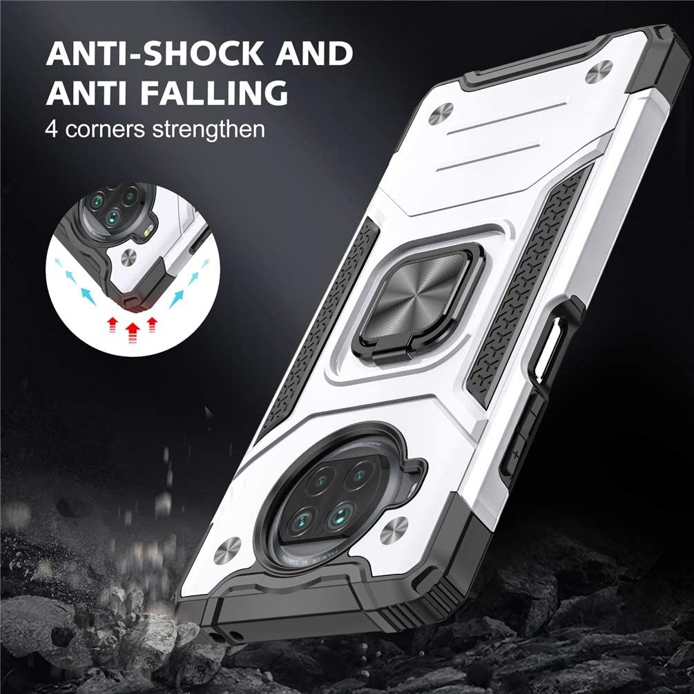 Hoesje Geschikt voor Xiaomi Redmi Note 9 5G/Note 9T 5G Hoesje - Heavy Duty Armor hoesje Zliver - Redmi Note 9 5G/Note 9T 5G hoesje 360-Degree hybride hoesje ringhouder