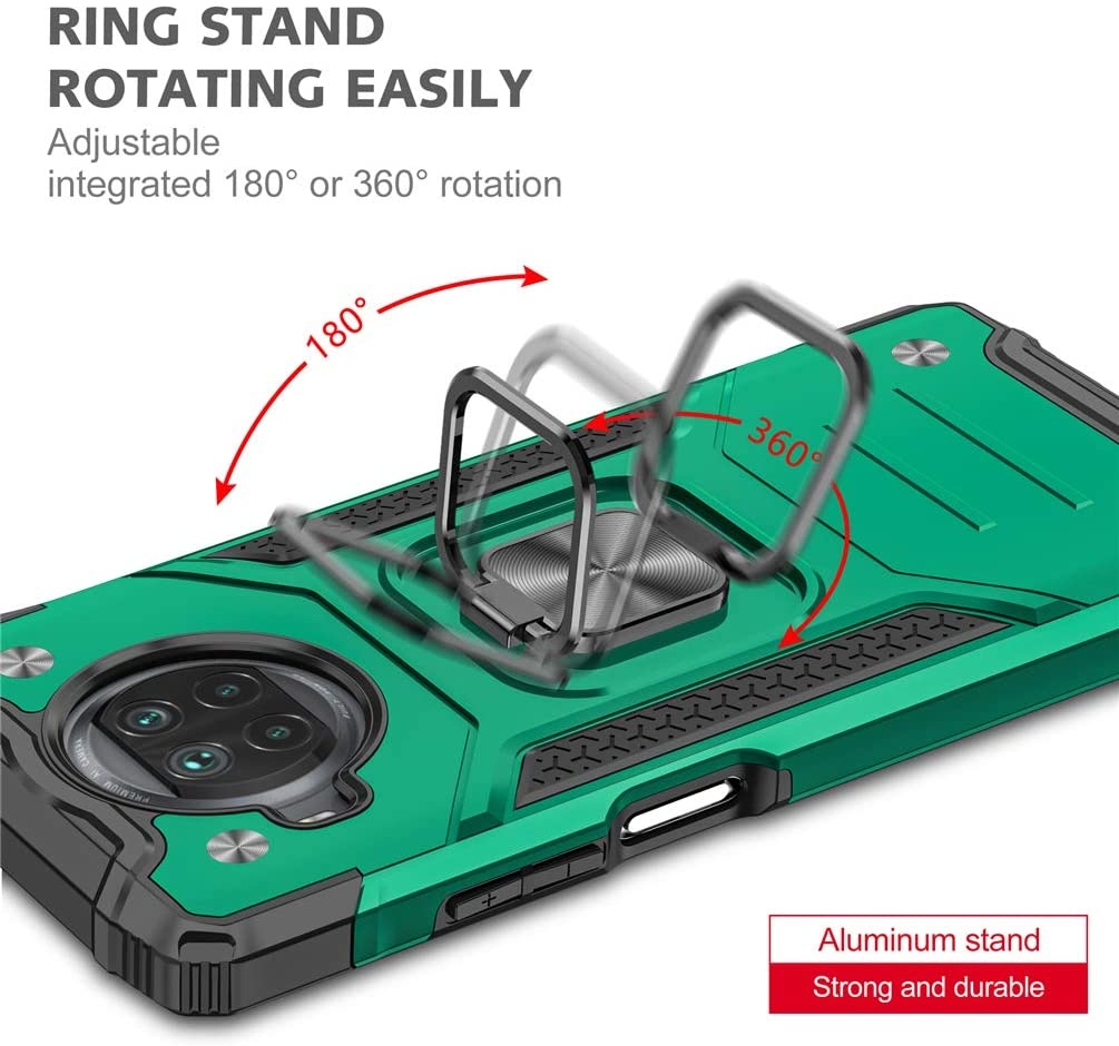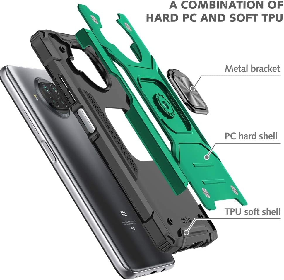 Hoesje Geschikt voor Xiaomi Redmi Note 9 5G/Note 9T 5G Hoesje - Heavy Duty Armor hoesje Groen - Redmi Note 9 5G/Note 9T 5G hoesje 360-Degree hybride hoesje ringhouder