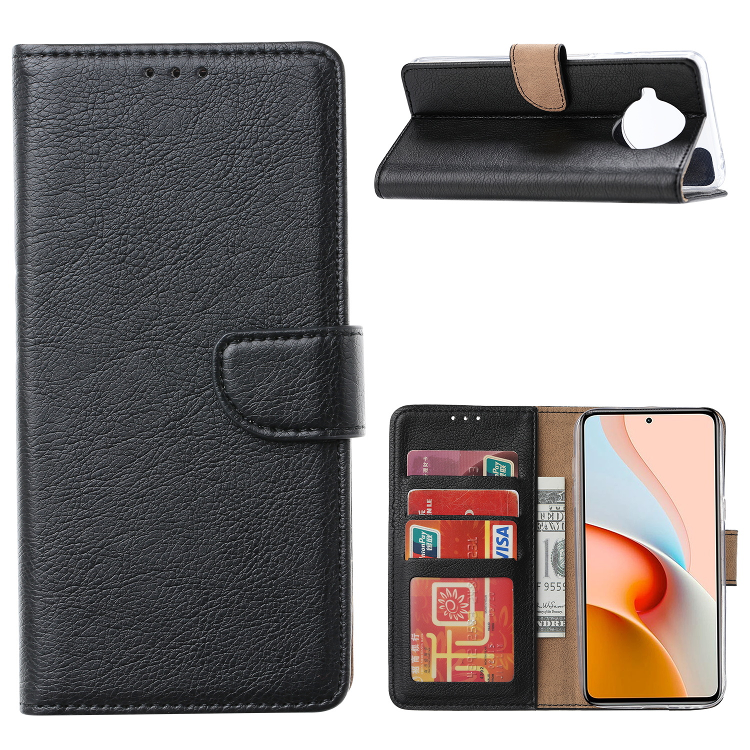 Hoesje Geschikt voor Xiaomi Redmi Note 9 Pro Hoesje wallet case cover met Pasjeshouder - Zwart